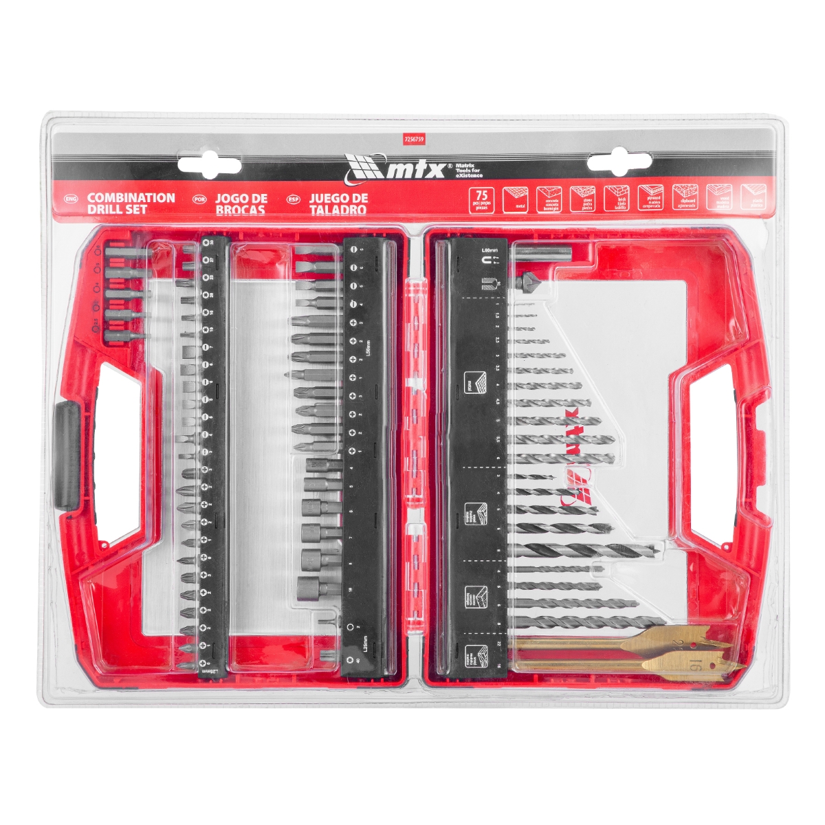 Jogo de Brocas Bits Soquetes 75 Peças MTX 7256759