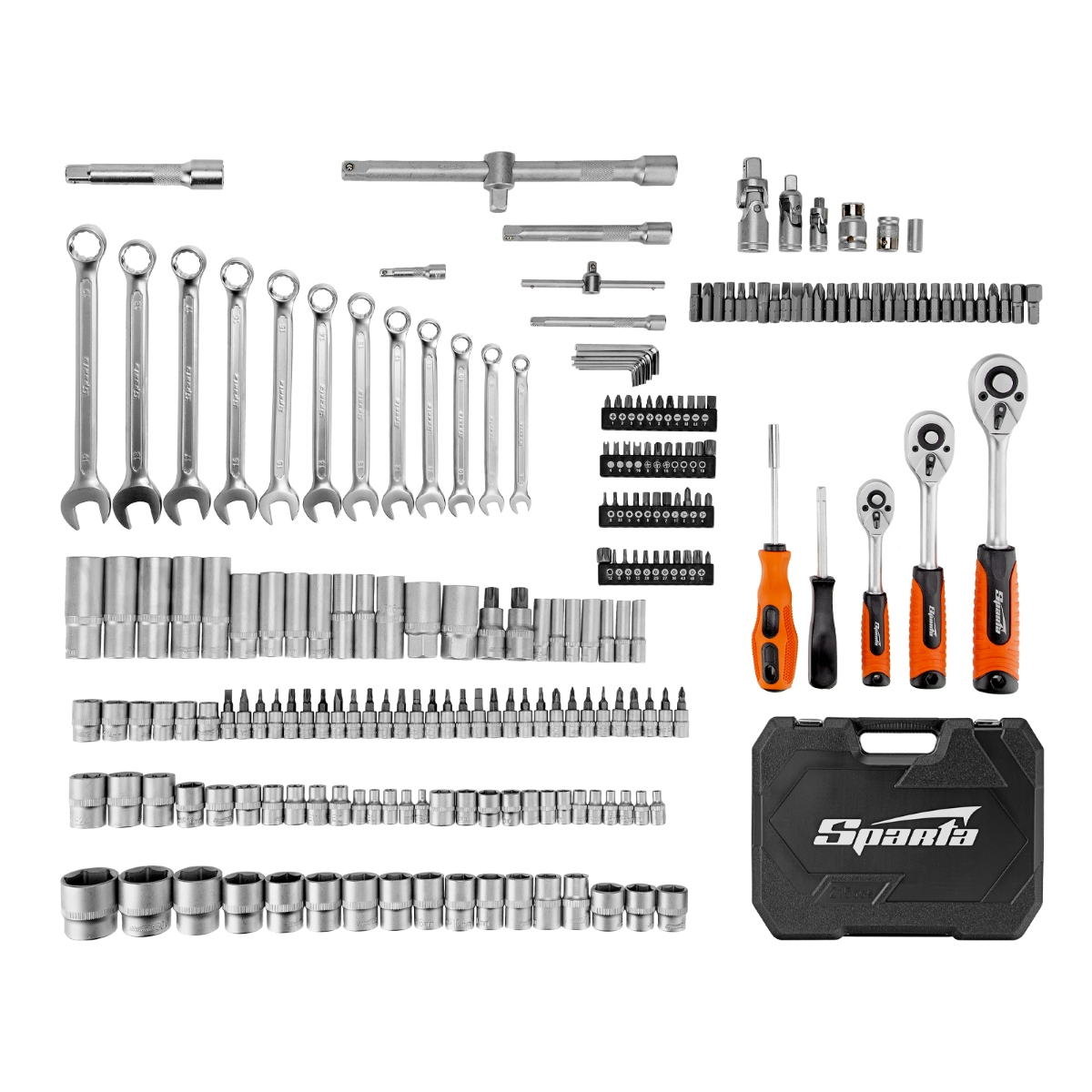 Jogo de Ferramentas Encaixe 1/2 3/8 1/4 Maleta Plástica 215 Peças Sparta 141707