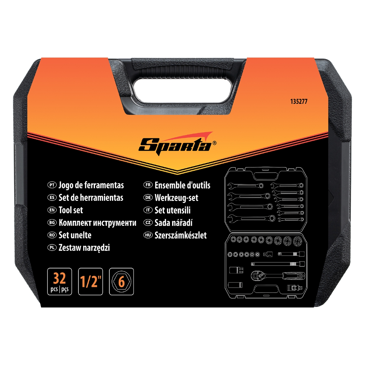 Jogo de Ferramentas com Encaixe 1/2' 32 Peças Sparta 135277 Aço CrV e Maleta