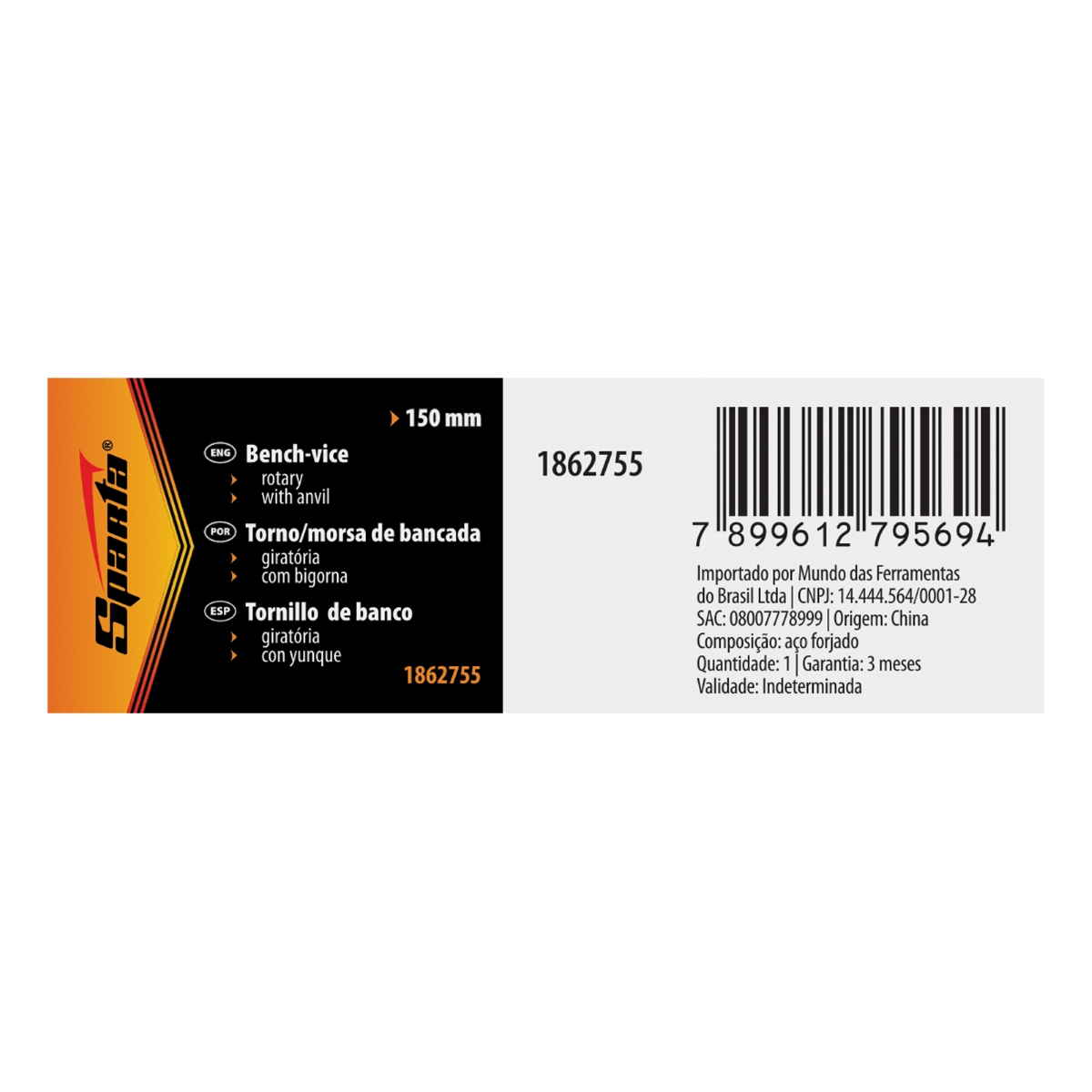 Torno de Bancada Rotativo com Bigorna Sparta: Precisão e Versatilidade para Seus Projetos O Torno de Bancada Rotativo com Bigorna Sparta 1862755 é a solução robusta e versátil que você precisa para o processamento de peças grandes em sua oficina ou garagem. Com mordentes de 150mm de largura e curso de trabalho de 125mm, este torno oferece a capacidade de segurar peças com firmeza e segurança, ideal para trabalhos que exigem precisão e resistência. Sua construção em ferro fundido e aço garante durabilidade e estabilidade, absorvendo vibrações e resistindo a deformações, mesmo sob cargas pesadas. O revestimento em pó protege contra a corrosão, assegurando uma longa vida útil, mesmo em ambientes desafiadores. A funcionalidade giratória permite ajustar facilmente a posição da peça, otimizando o acesso a diferentes ângulos e superfícies, enquanto a bigorna integrada amplia suas capacidades para trabalhos de impacto, como martelamento e modelagem. As mandíbulas em relevo proporcionam uma fixação segura, minimizando o risco de deslizamento e garantindo a precisão do trabalho. Fixe-o na bancada com parafusos e transforme-o em uma ferramenta estacionária estável e confiável, ideal para operações que exigem firmeza e segurança. Especificações País de Fabricação: China Curso de Trabalho: 125 mm Largura das Mandíbulas: 150 mm Itens Inclusos Torno de Bancada Rotativo com Bigorna Sparta 1862755 Perguntas Frequentes (FAQ) Pergunta: Qual o material de fabricação do corpo do torno?Resposta: O corpo do torno é fabricado em ferro fundido, garantindo robustez e estabilidade. Pergunta: Qual o material das mandíbulas?Resposta: As mandíbulas são fabricadas em aço, proporcionando um aperto firme e confiável. Pergunta: Este torno possui proteção contra corrosão?Resposta: Sim, as superfícies não operacionais possuem revestimento em pó para proteção contra a corrosão. Pergunta: Qual a garantia do produto?Resposta: Garantia legal: 90 dias