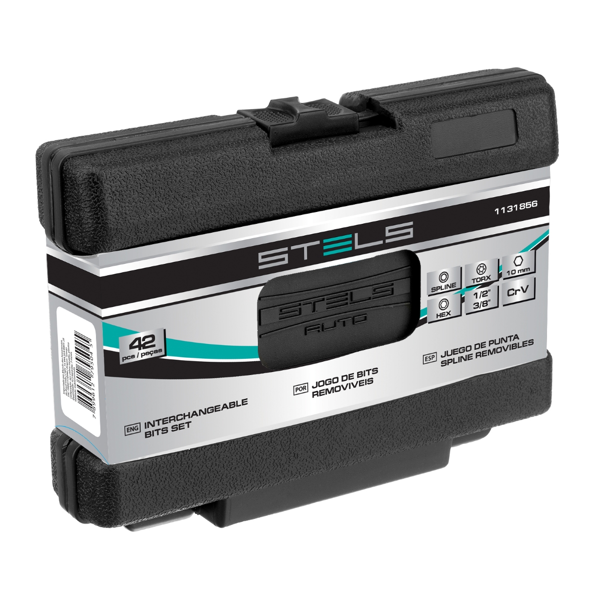 Jogo de Bits Hex Torx Spline 42 Peças 10mm CrV 1/2'' 3/8'' Caixa Plástica Stels 1131856