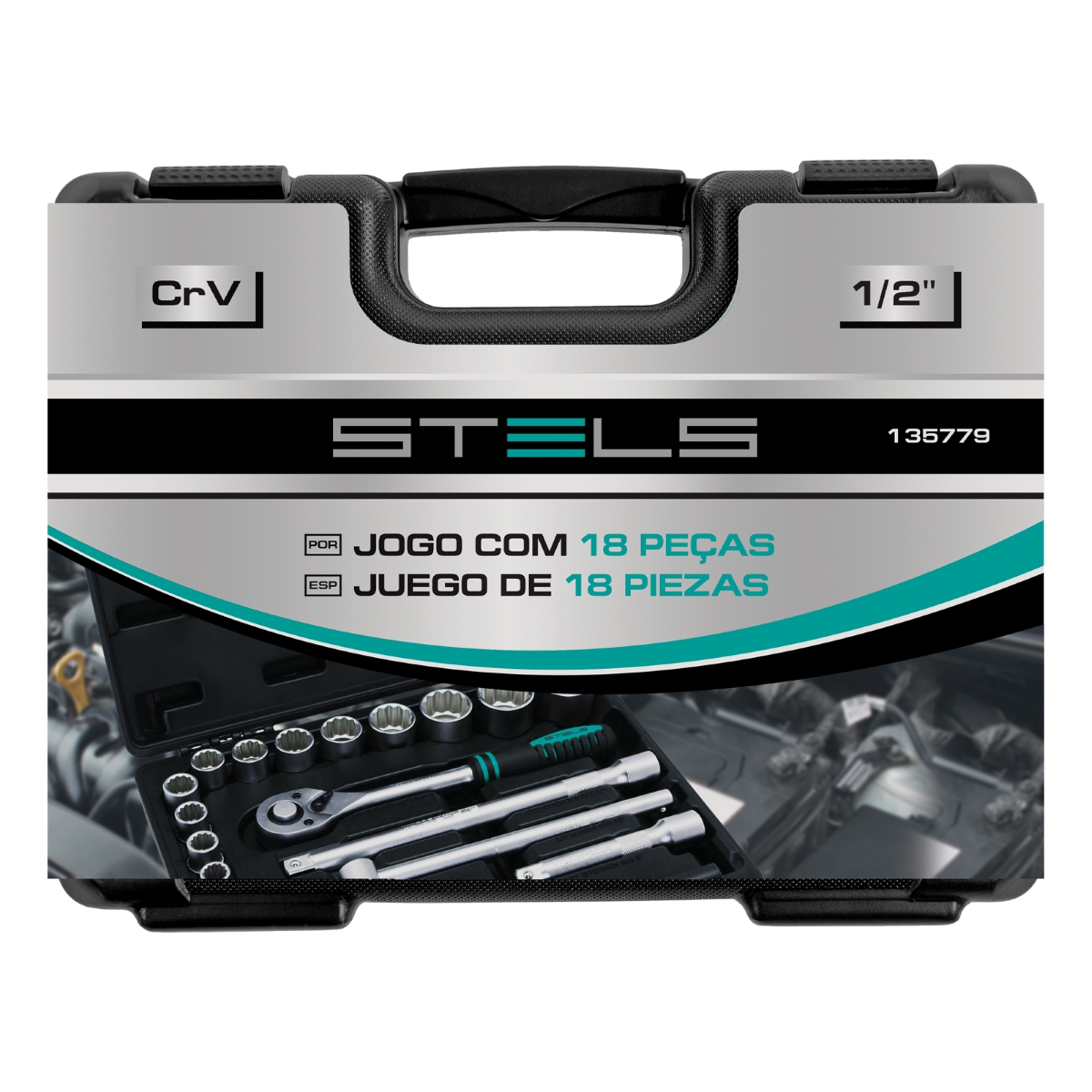 Jogo De Ferramentas Encaixe 1/2'' 18 Peças Cromo Vanádio Stels 135779