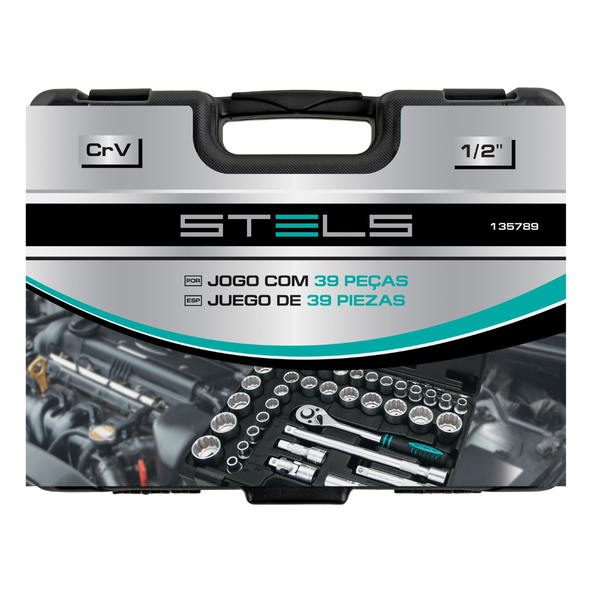 Jogo de Ferramentas Encaixe 1/2" 39 Peças Aço Cromo Vanádio Stels 135789 Maleta