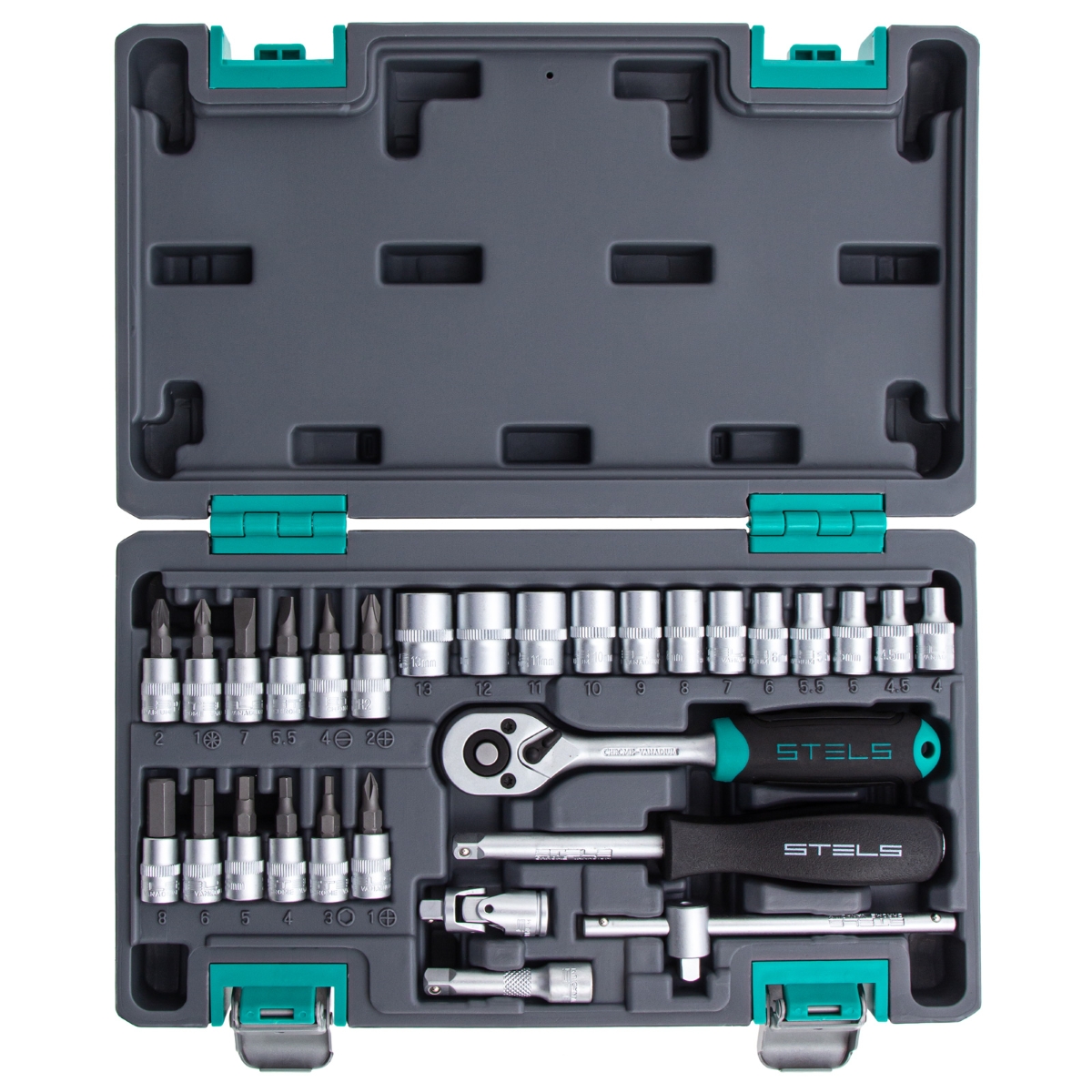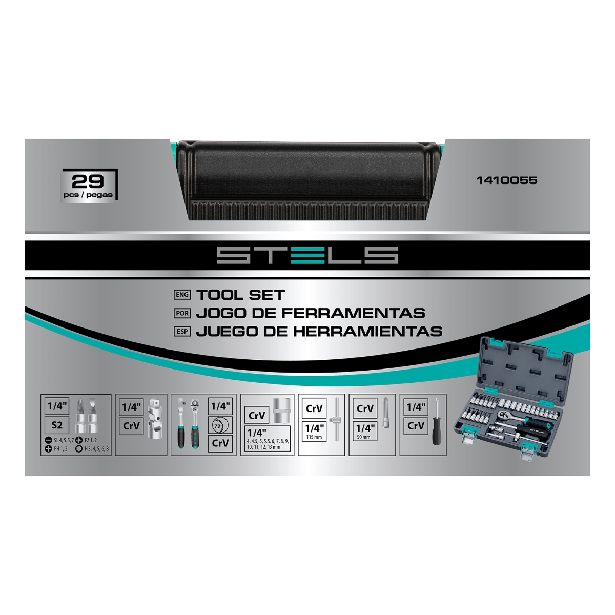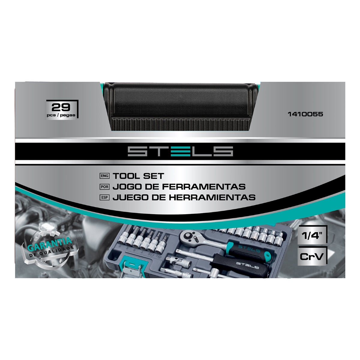 Jogo De Ferramentas Encaixe 1/4'' 29 Peças Aço Cromo Vanádio Maleta Stels 1410055
