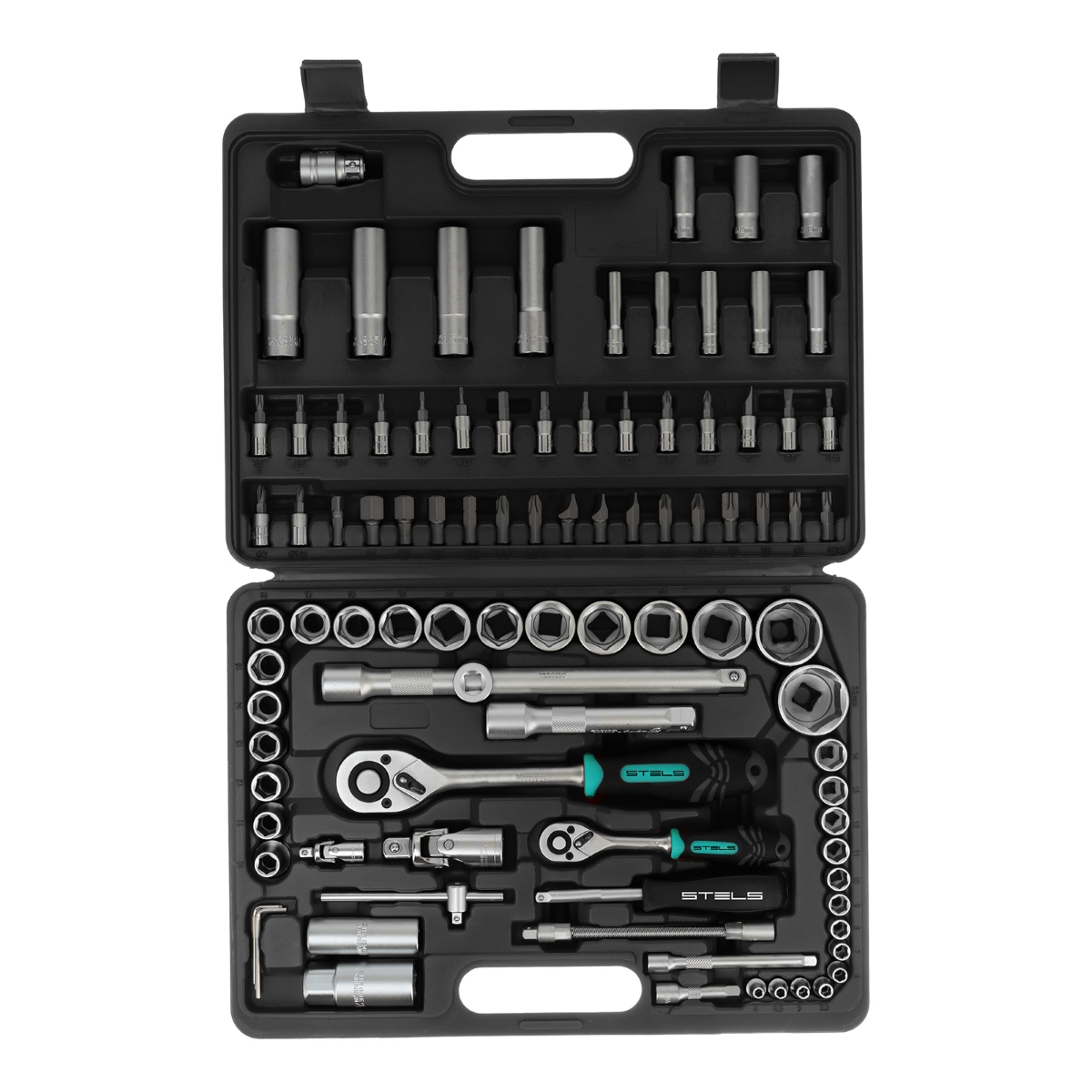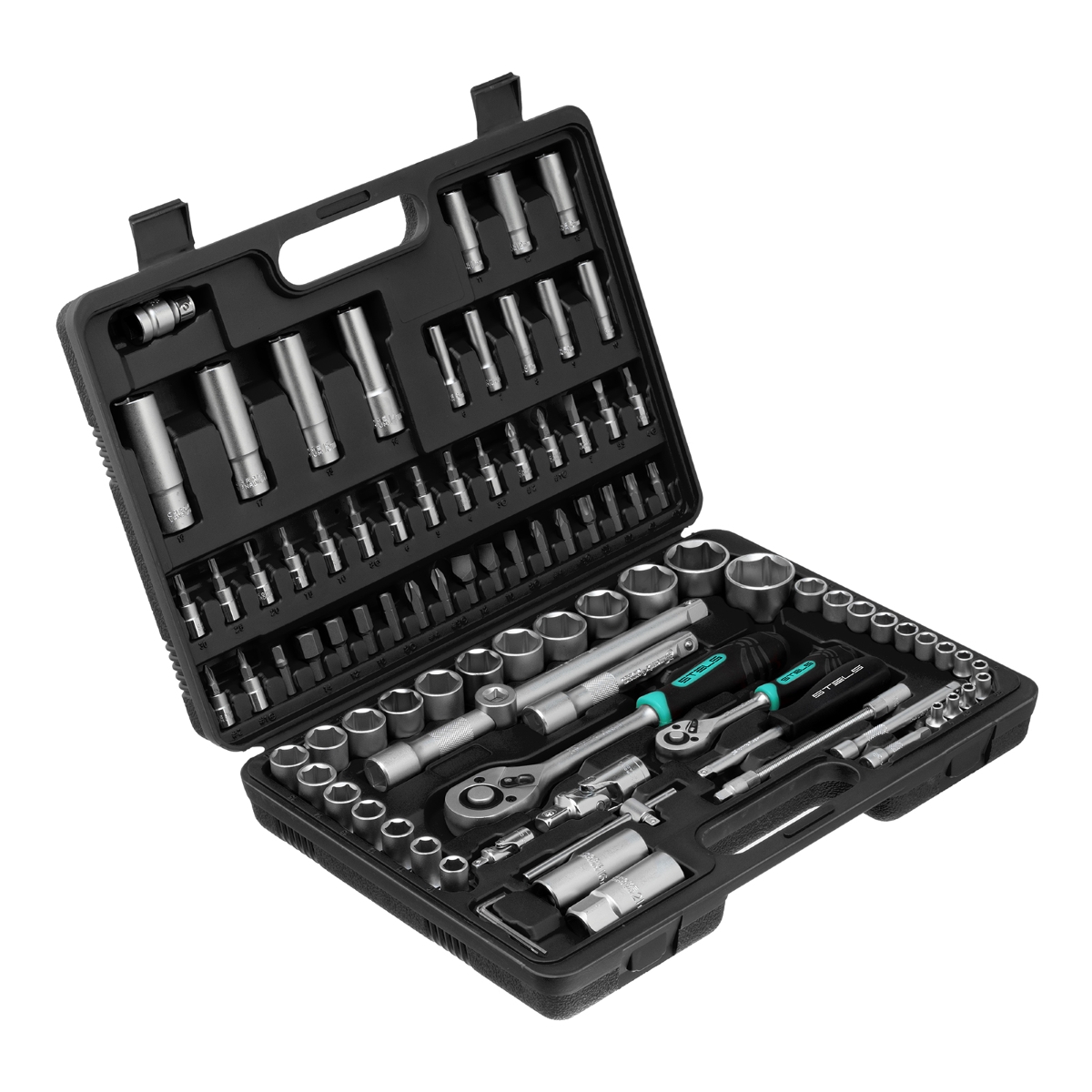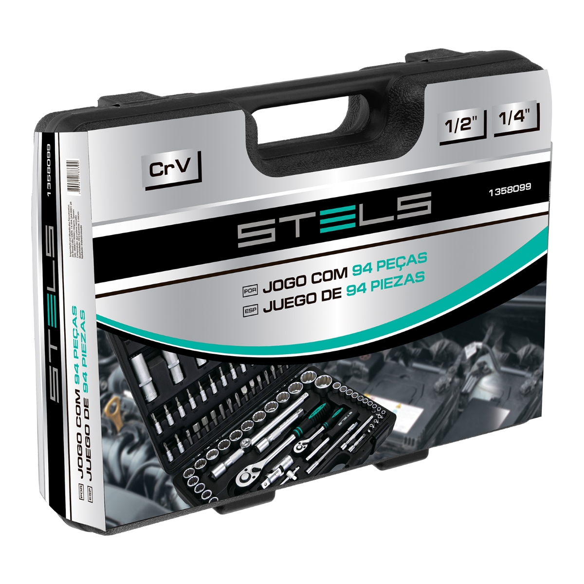Jogo de Ferramentas Stels 94 Peças Maleta Plástica 1/4'' e 1/2'' Cromo Vanádio