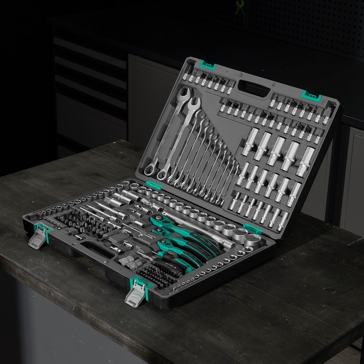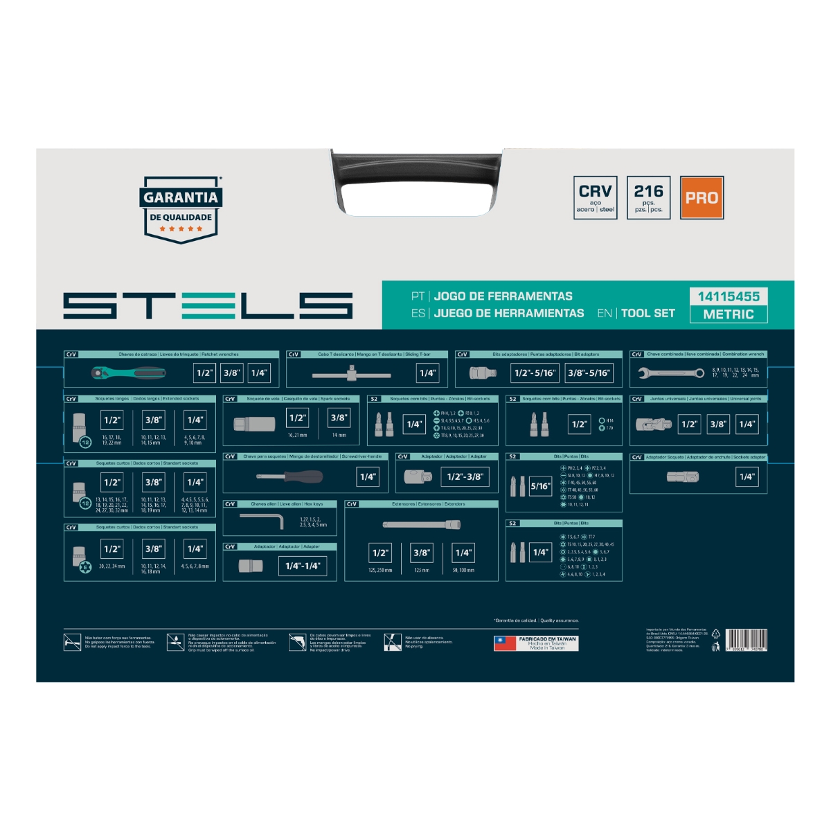 Jogo de Ferramentas 216 Pcs Stels 14115455 Encaixe 1/4'' 3/8'' e 1/2'' Aço CrV S2 com Maleta