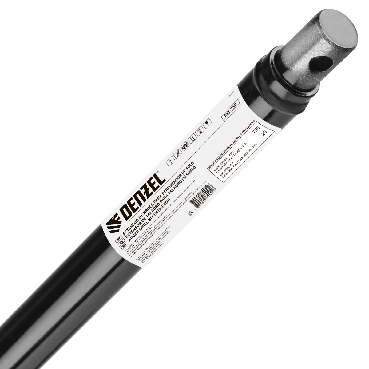 Extensão Broca Helicoidal Perfurador Solo 1000mm 20mm Aço Carbono RST34-2 Denzel EXT-1000