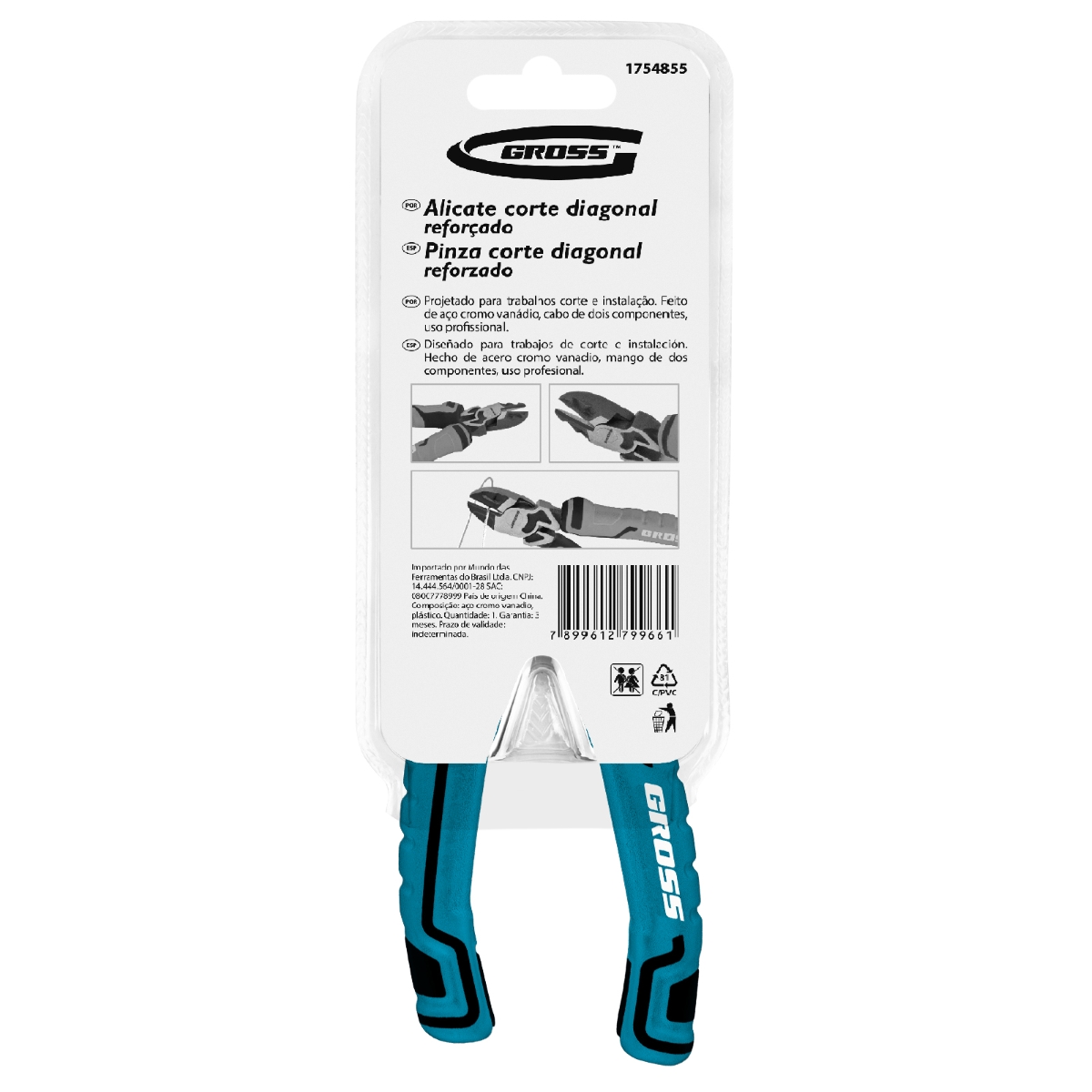Alicate Corte Diagonal Reforçado 6'' 150mm Aço CrV Gross 1754855