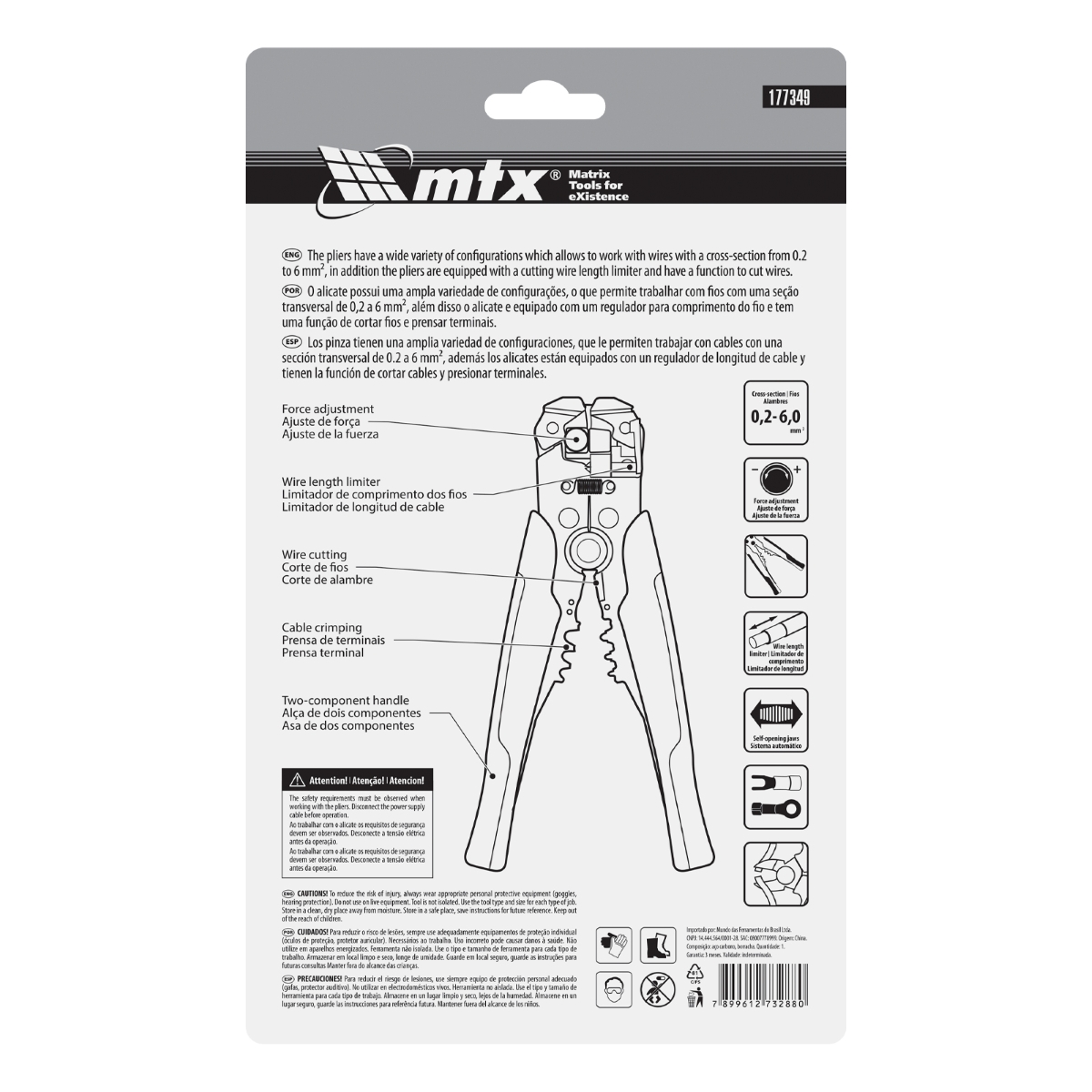 Alicate Desencapador Fios Metal Cabo Emborrachado 0.2-6mm Autoabertura MTX 177349