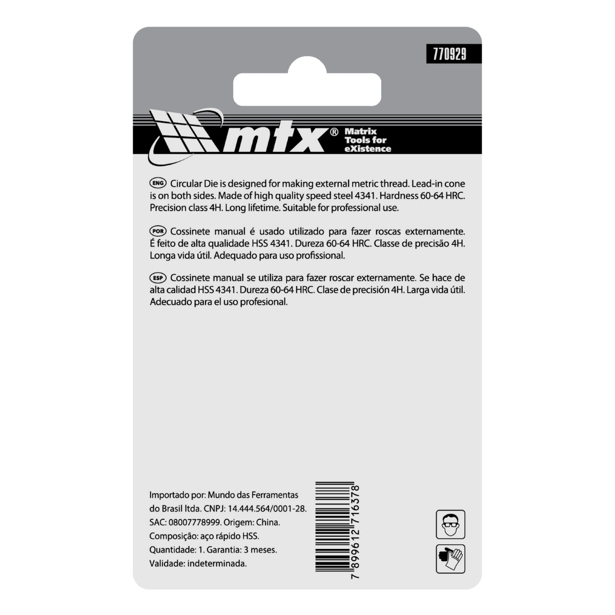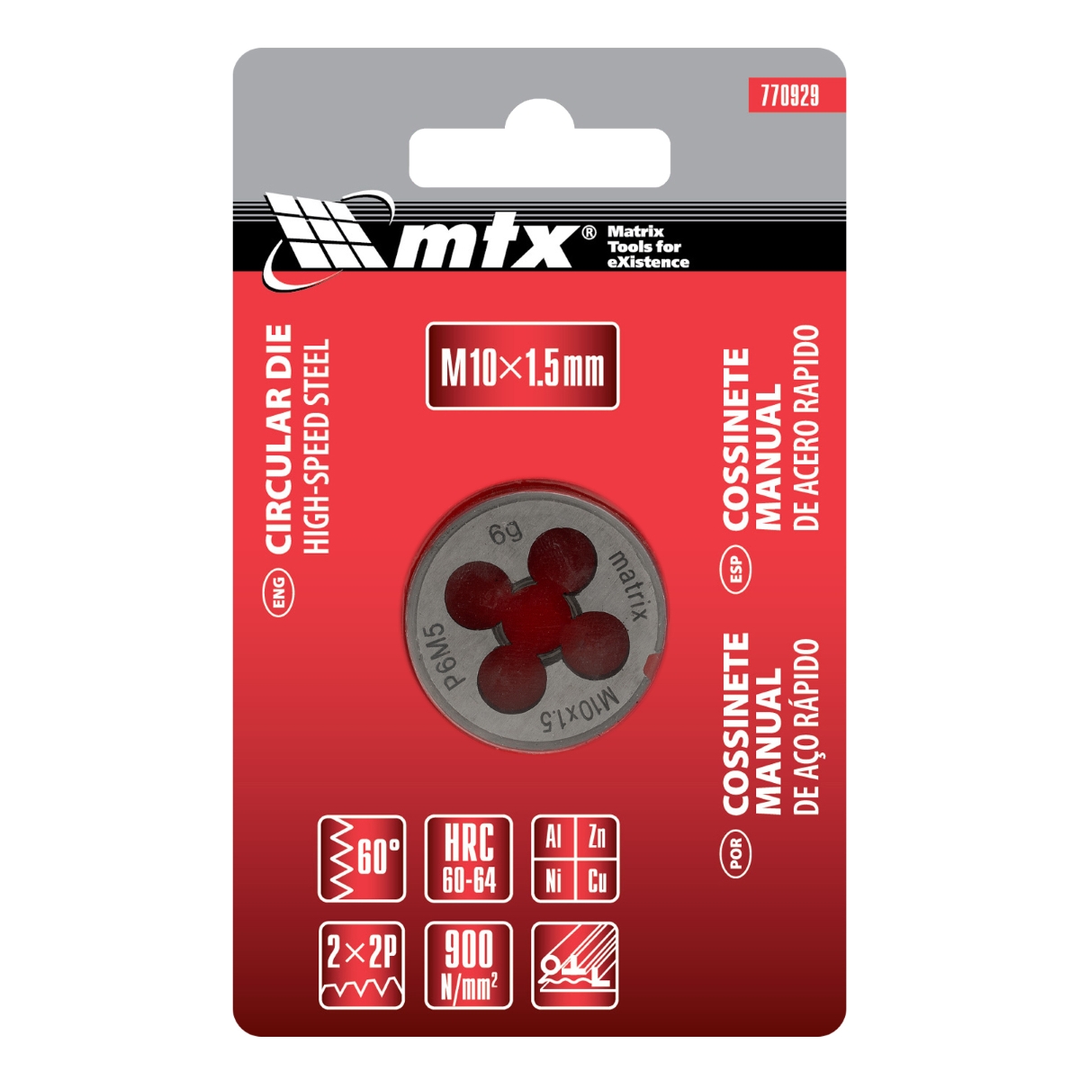 Cossinete Manual Aço Rápido M10 x 1,5mm 6G Precisão MTX 770929 Ferramenta Restauração Rosca