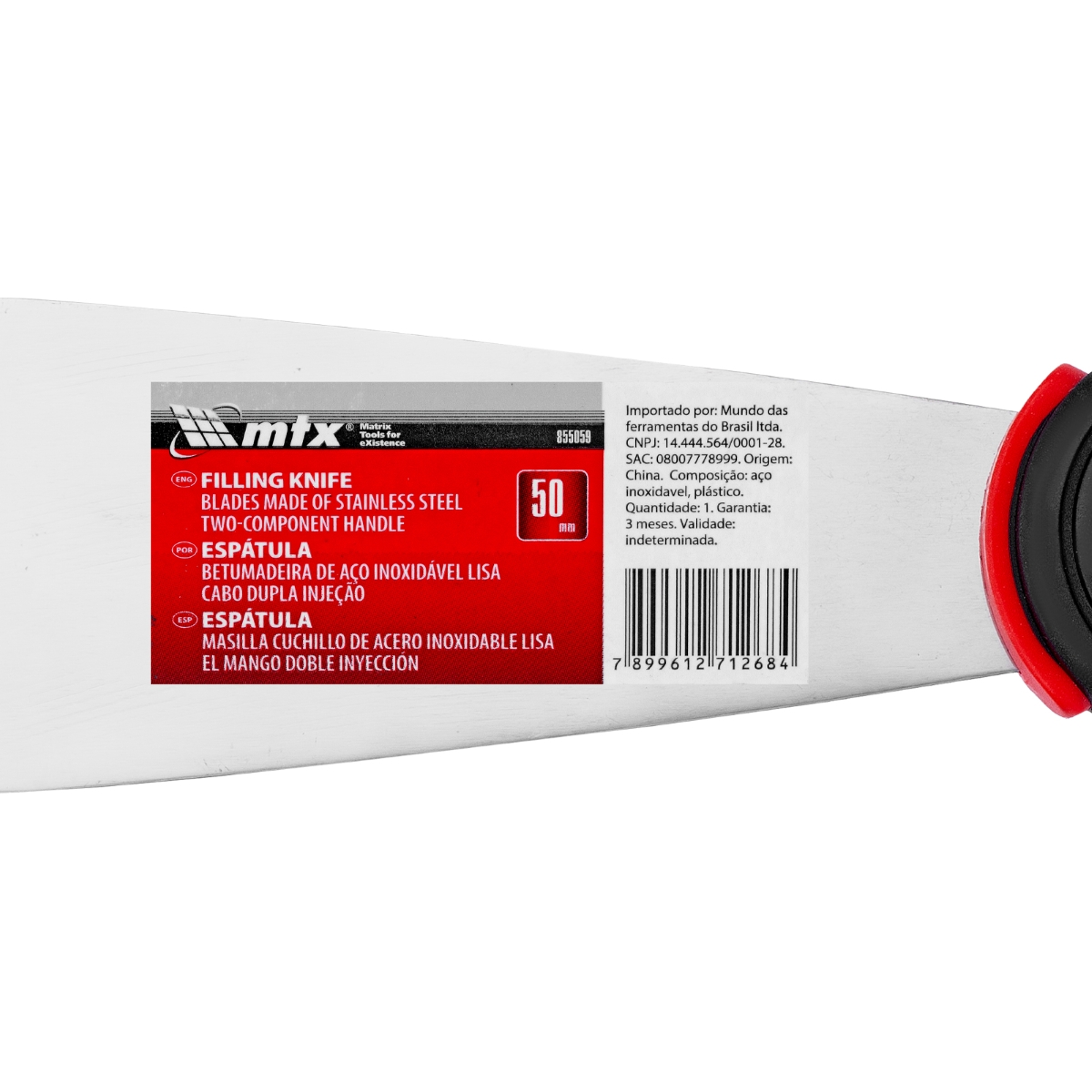 Espátula Betumeira Aço Inox Lisa Cabo Dupla Injeção 50mm 2pol MTX 855059