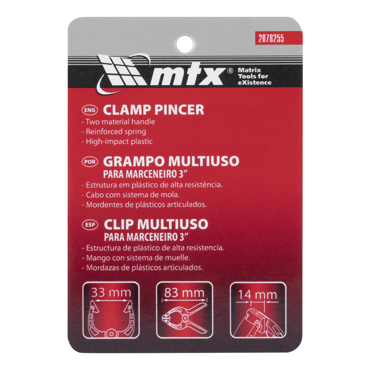 Grampo Multiuso Para Marceneiro 3Pol MTX Com Braçadeira Mola 32mm Plástico Resistente