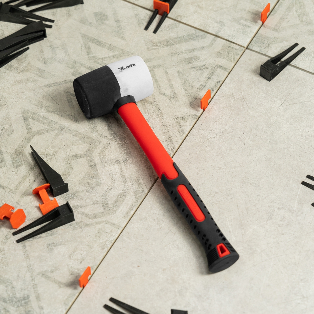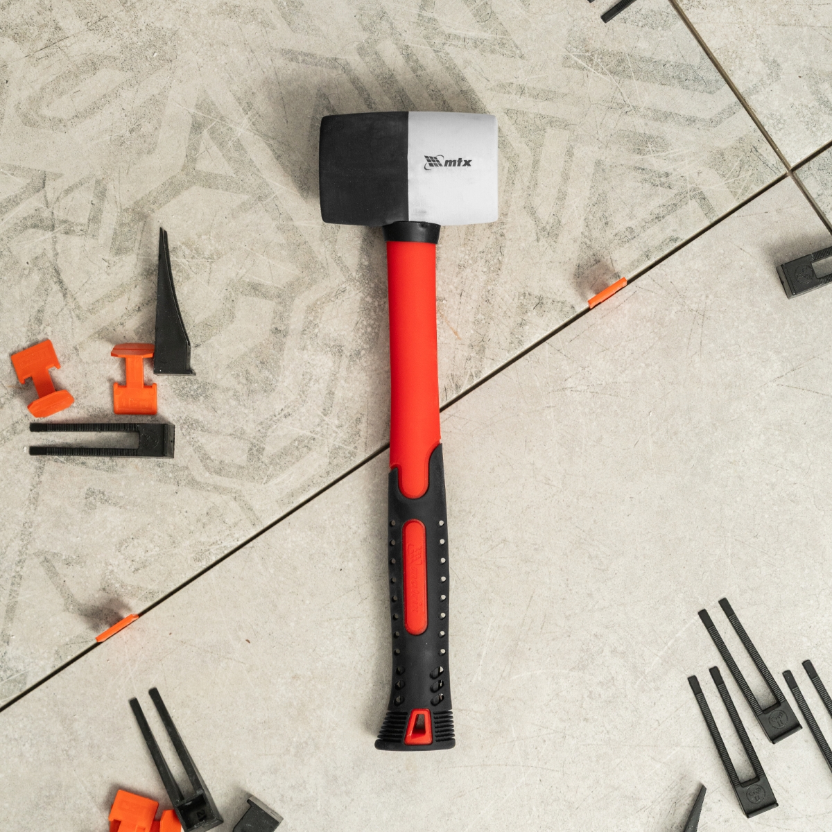 Martelo de Borracha 225g Cabo Fibra Vidro Preto e Branco MTX 111709 Profissional