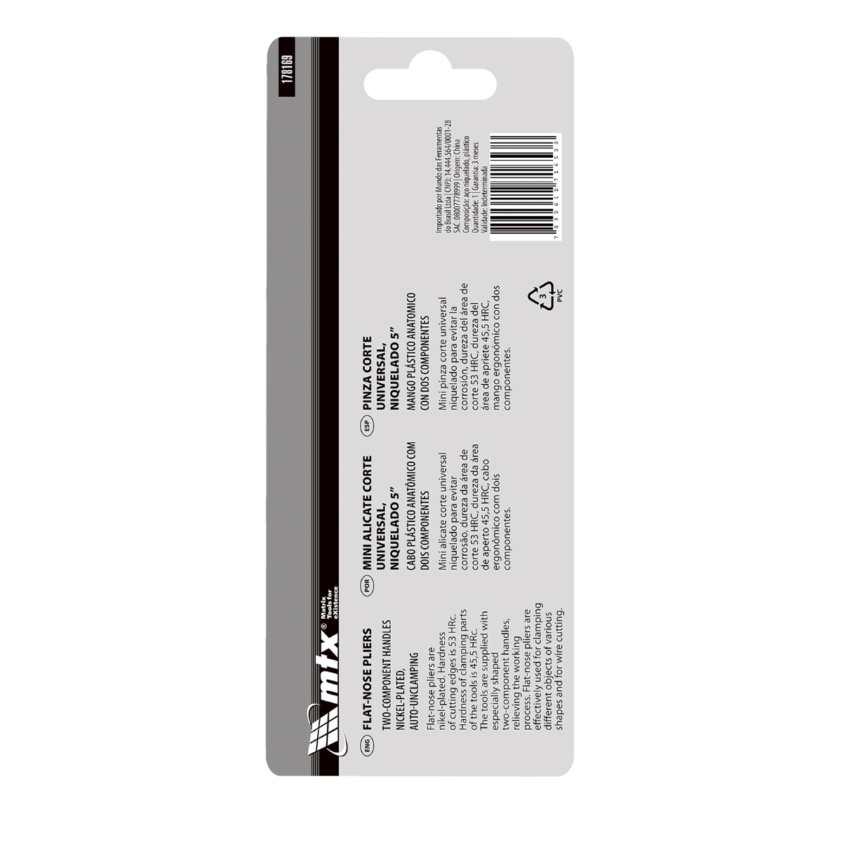 Alicate Universal Niquelado Mini 130mm Cabo Dupla Injeção Aço 45 MTX 178169