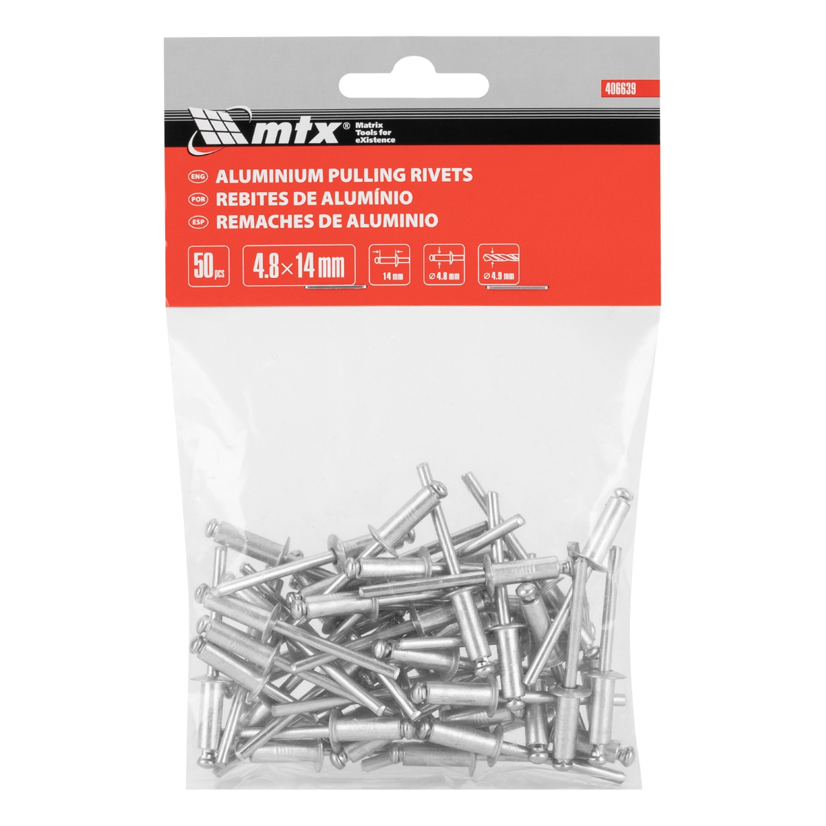 Rebite de Repuxo 4.8x14mm 50 Pcs MTX Aço Galvanizado Resistente Corrosão