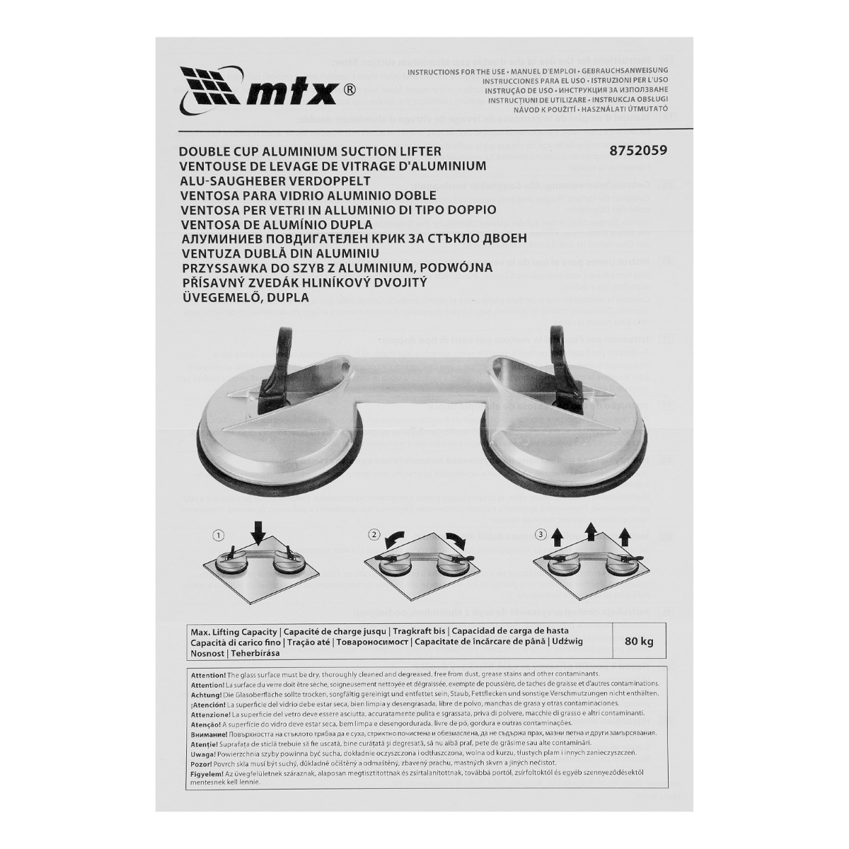 Ventosa Dupla Alumínio MTX 8752059 80kg 117mm Durável e Ergonômica