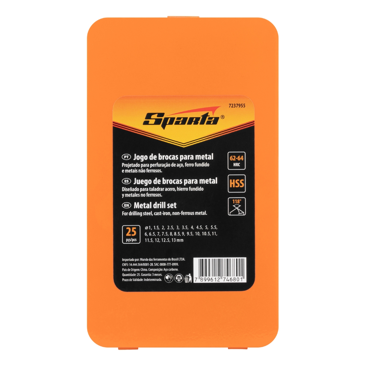 Jogo de Brocas Metal 1-13mm 0.5mm 25 Peças HSS Caixa Metal Sparta