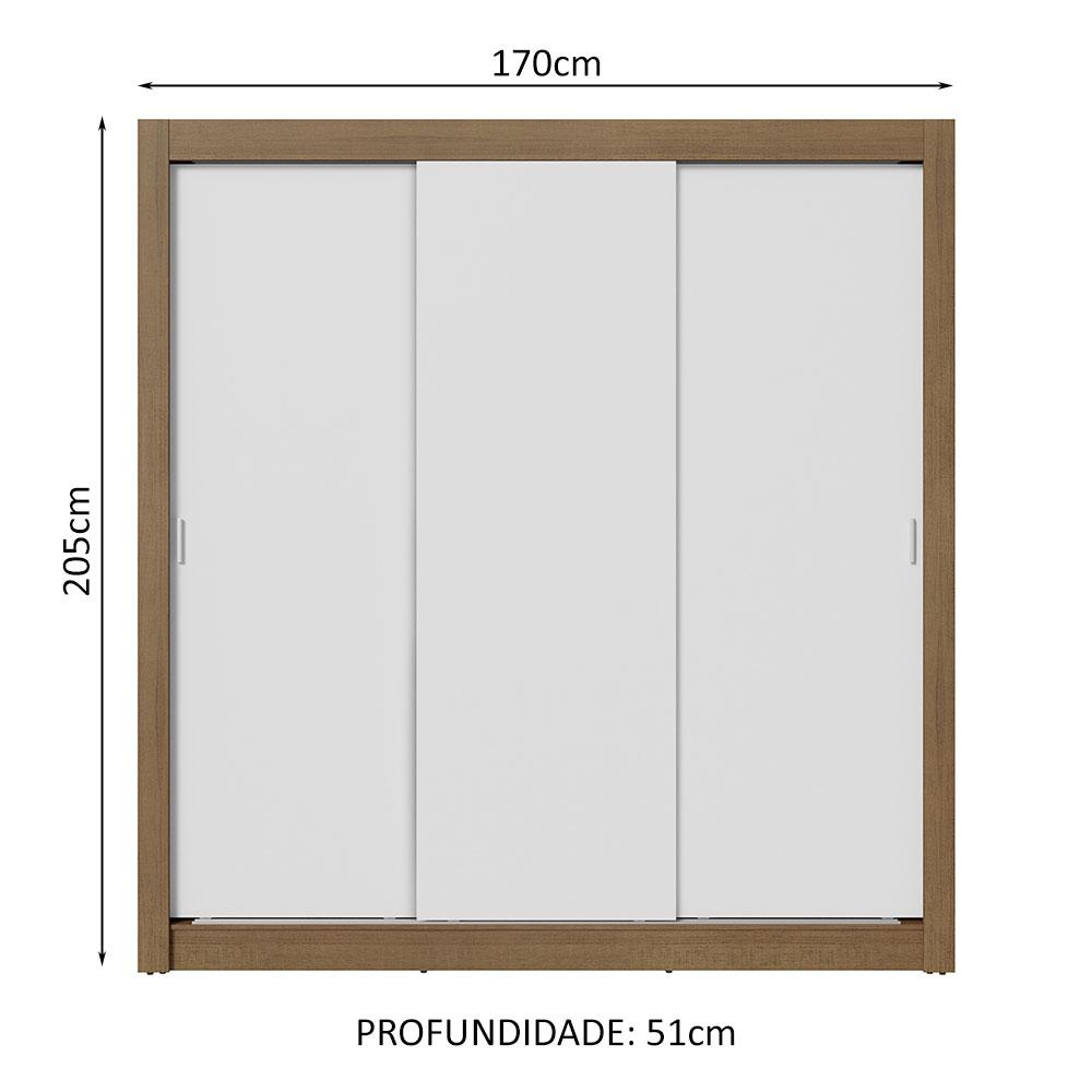 Guarda-Roupa Casal 3 Portas de Correr Rustic/Branco Sublime Madesa