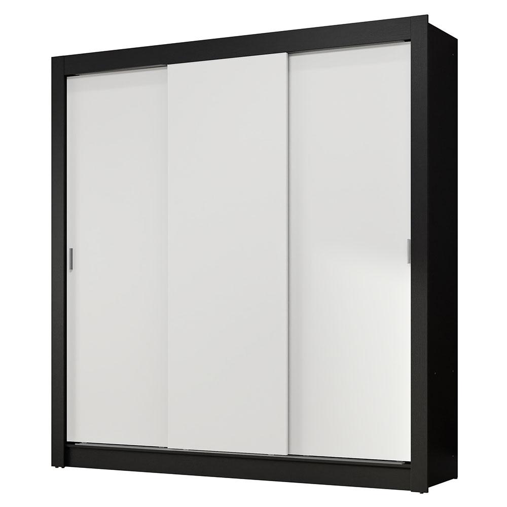 Guarda-Roupa Casal 3 Portas de Correr Preto/Branco Nobre Madesa
