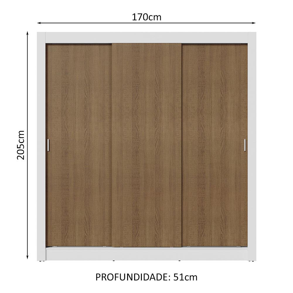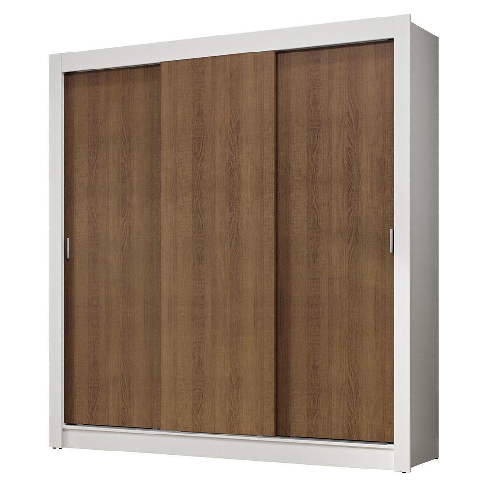 Guarda-Roupa Casal 3 Portas de Correr Branco/Rustic Nobre Madesa