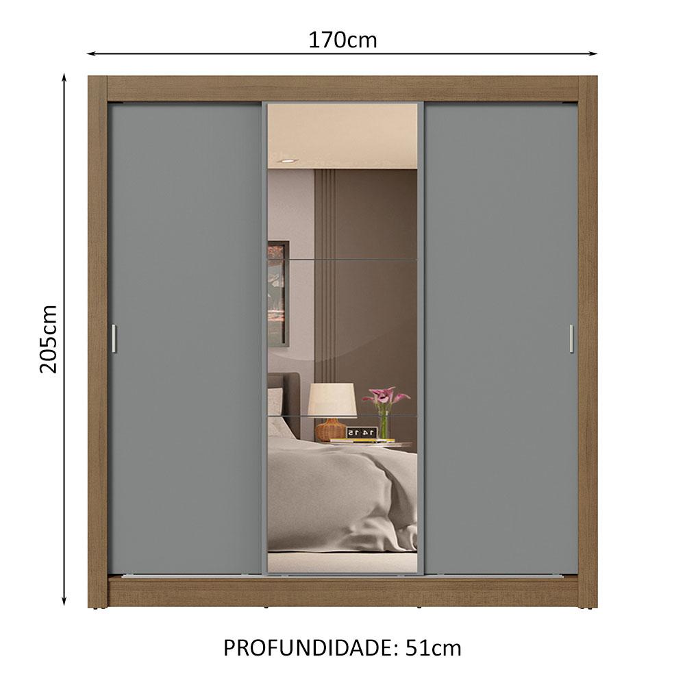 Guarda-Roupa Casal 3 Portas de Correr com Espelho 4 Gavetas Rustic/Cinza Sublime Plus Madesa