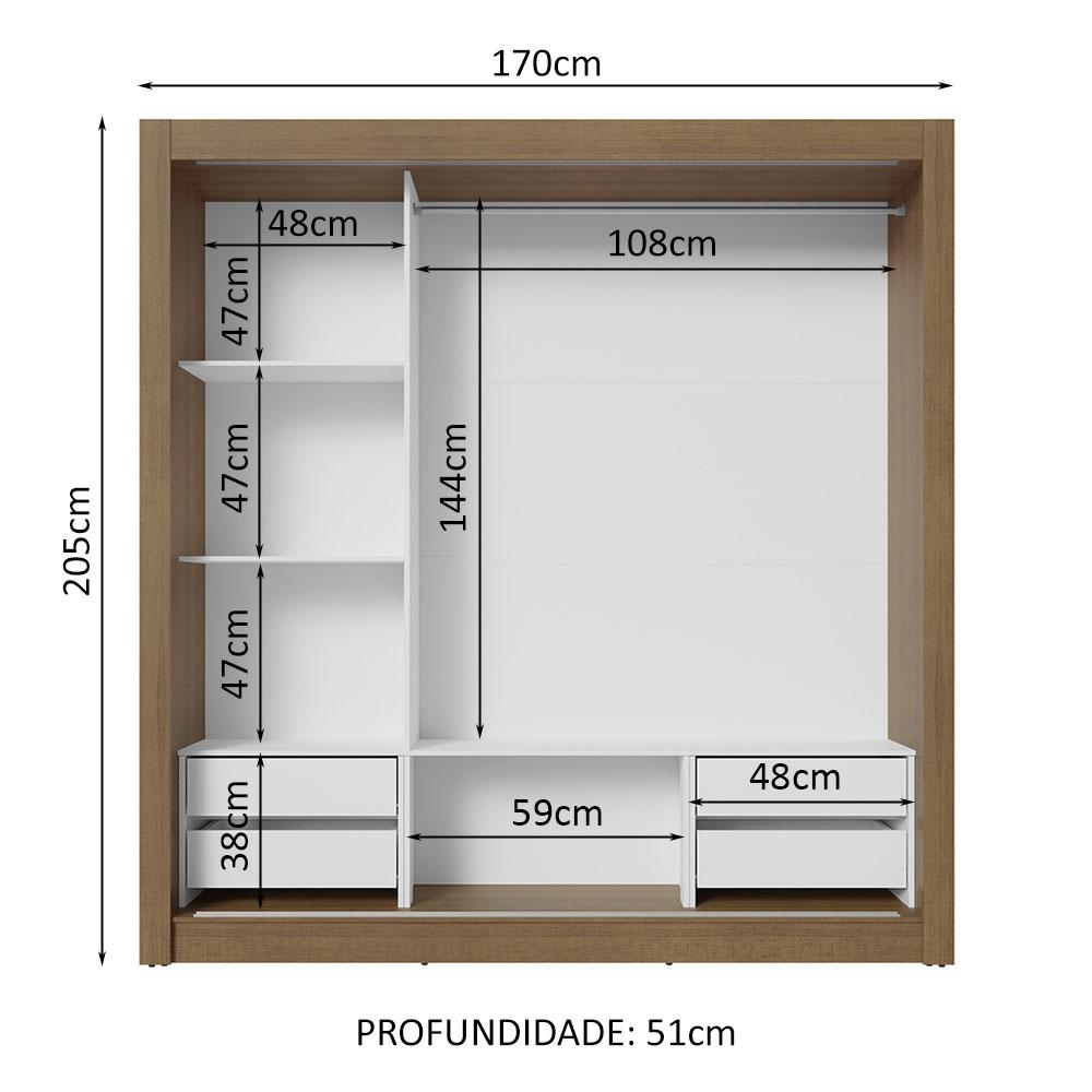 Deixe os seus itens mais organizados e ao alcance com o Guarda-Roupa Casal Sublime Plus da Madesa, uma opção moderna e espaçosa.Características principais: Conta com portas de correr que deslizam suavemente, graças aos trilhos superiores e inferiores em alumínio. Isso garante um funcionamento tranquilo e sem esforço. Uma das portas conta com espelhos, que são úteis no dia a dia e deixam o móvel ainda mais elegante.Ótimo espaço interno e organização: Ideal para um casal, possui diversos nichos e quatro gavetas que facilitam a organização de roupas, calçados e acessórios. O tubo cabideiro metálico é resistente e perfeito para pendurar roupas longas.Acabamento de qualidade: Combinando os tons amadeirado Rustic e cinza, o acabamento é realizado com a Pintura Poliéster de sete camadas da Madesa, um método ecológico que oferece maior durabilidade e proteção.Medidas totais: 205 cm de altura x 170 cm de largura x 51 cm de profundidade.O que você recebe:- Um (1) Guarda-roupa com quatro gavetas e três portas de correr, sendo uma com espelhos- Ferragens e manual de montagemCódigo do produto: 1193F91E4GÉ bom saber:- As imagens são meramente ilustrativas- A Madesa não disponibiliza serviço de montagemA Madesa se dedica à sustentabilidade com várias iniciativas: temos uma usina própria para gerar energia que abastece uma de nossas fábricas. Selecionamos nossos fornecedores, priorizando aqueles que possuem um compromisso com a sustentabilidade e proteção do meio ambiente. Todo o plástico utilizado no setor produtivo é proveniente de reciclagem e as suas sobras são encaminhadas ao fornecedor que os recicla. Também investimos no desenvolvimento contínuo de nossos colaboradores e em ações educacionais que beneficiem a comunidade.