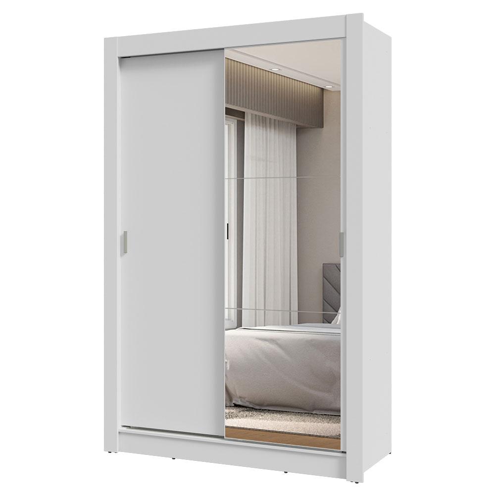 Guarda-Roupa Solteiro 2 Portas de Correr com Espelho 2 Gavetas Branco Vivare Madesa