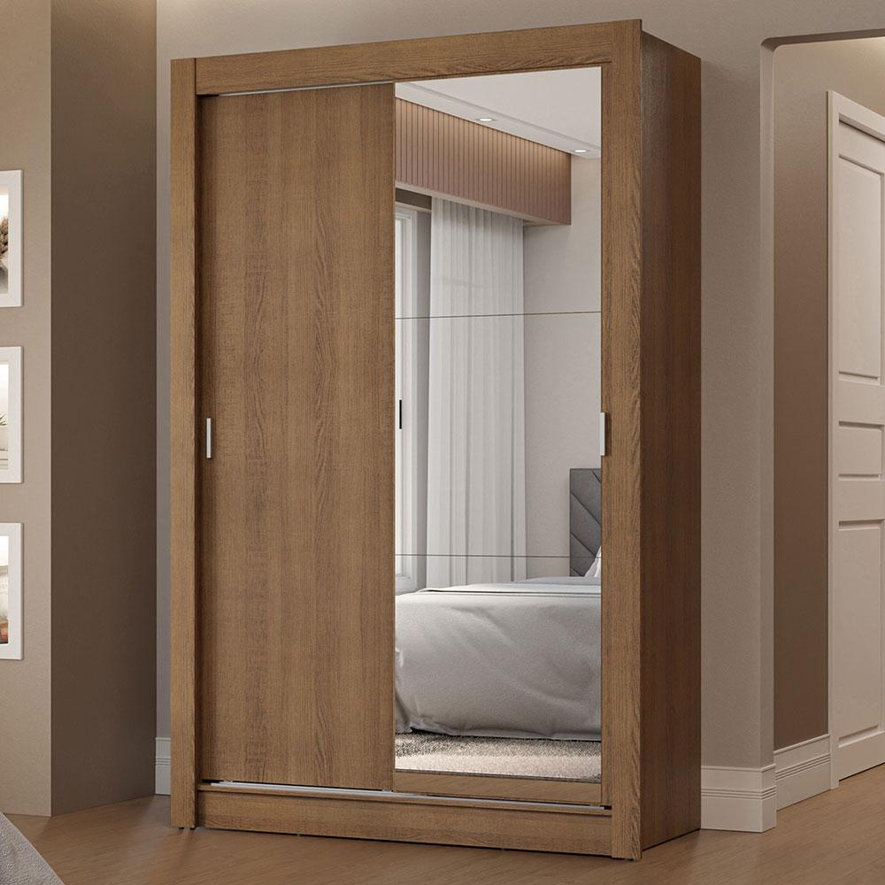 Guarda-Roupa Solteiro 2 Portas de Correr com Espelho 2 Gavetas Rustic Vivare Madesa