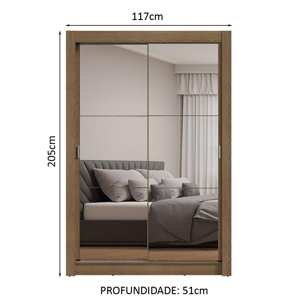 Guarda-Roupa Solteiro 2 Portas de Correr com Espelhos Rustic Milano Madesa