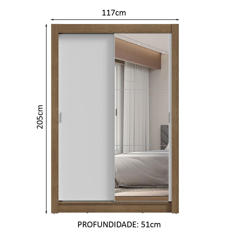 Guarda-Roupa Solteiro 2 Portas de Correr com Espelho 2 Gavetas Rustic/Branco Vivare Madesa