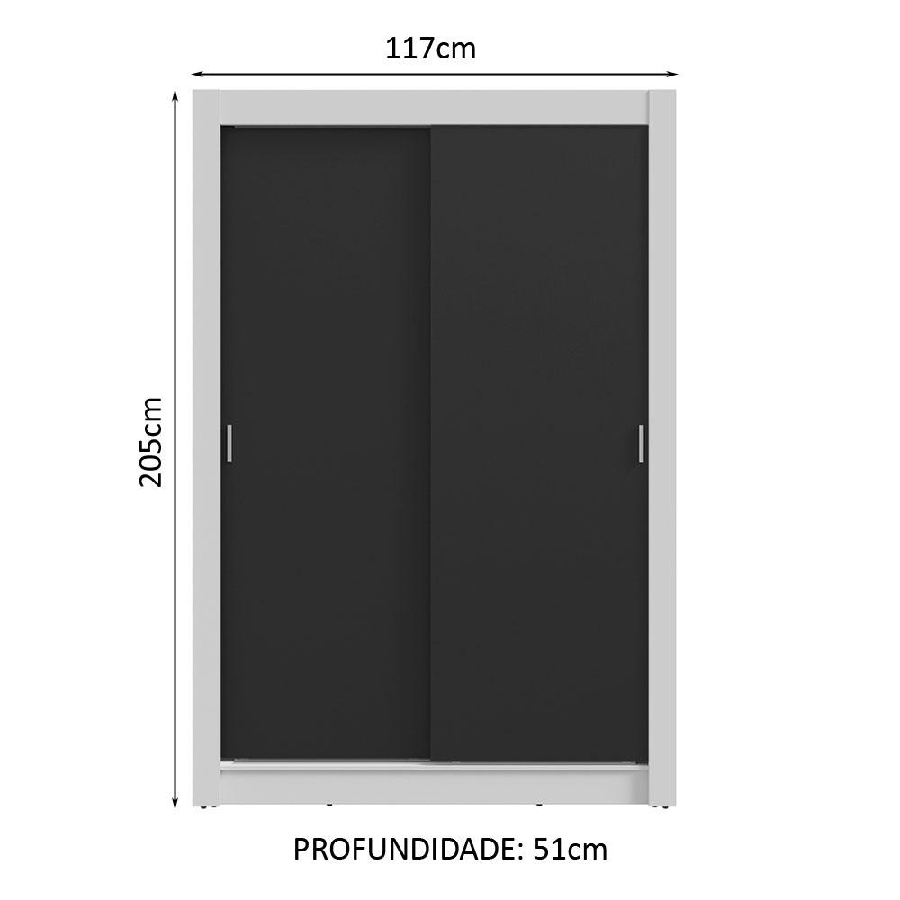 Guarda-Roupa Solteiro 2 Portas de Correr Branco/Preto Milano Madesa