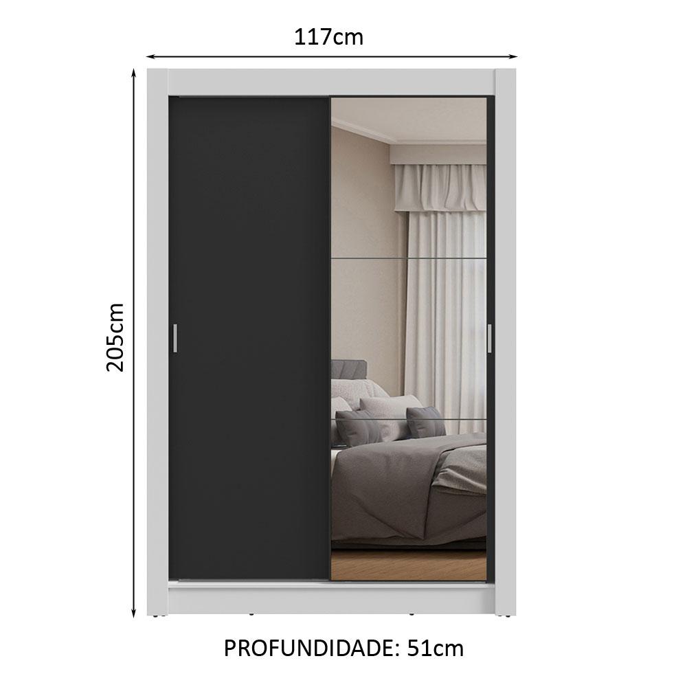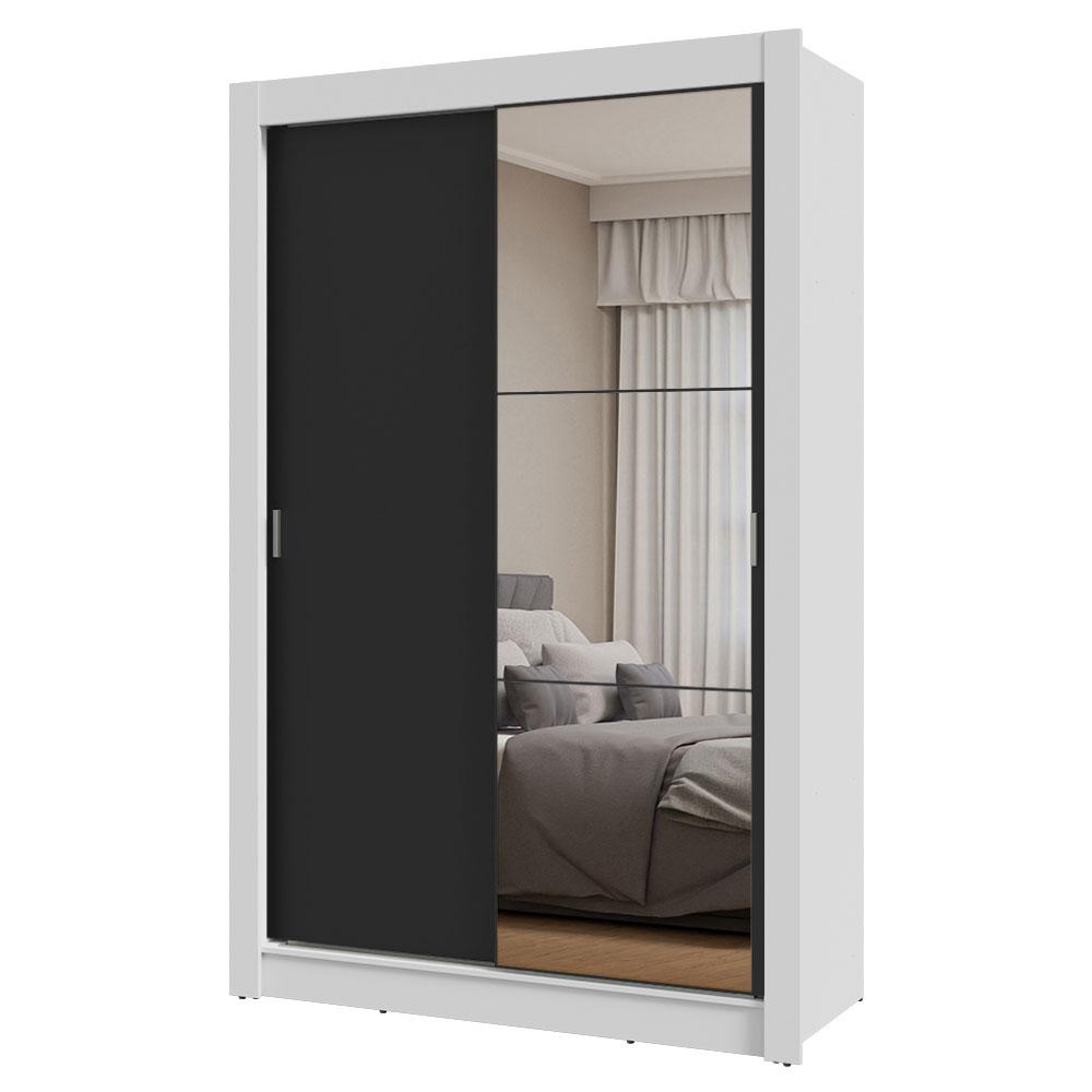 Guarda-Roupa Solteiro 2 Portas de Correr com Espelho Branco/Preto Milano Madesa