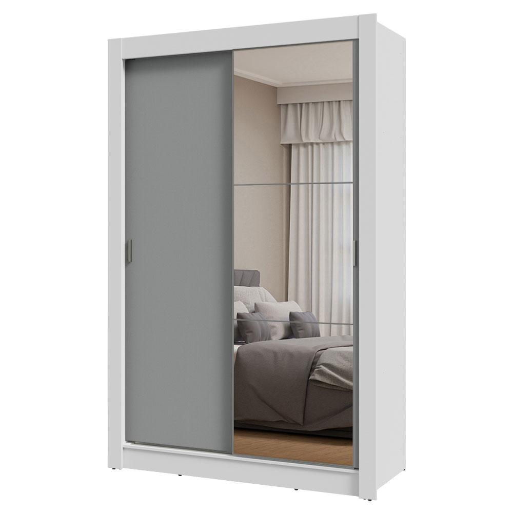 Guarda-Roupa Solteiro 2 Portas de Correr com Espelho Branco/Cinza Milano Madesa