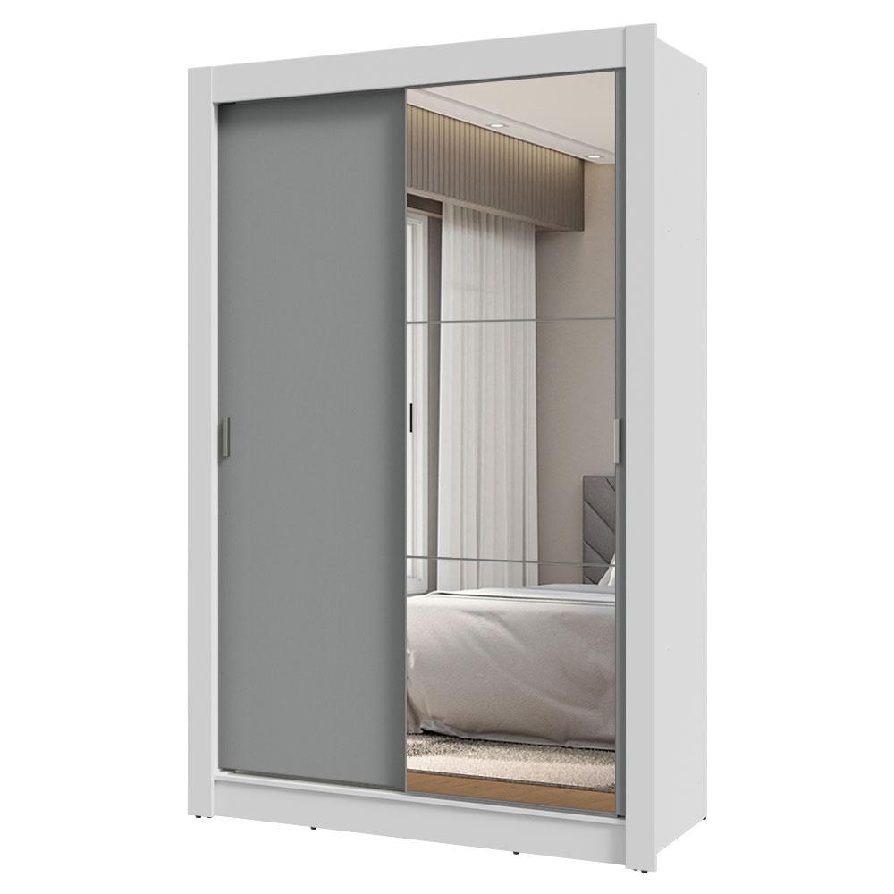 Guarda-Roupa Solteiro 2 Portas de Correr com Espelho 2 Gavetas Branco/Cinza Vivare Madesa