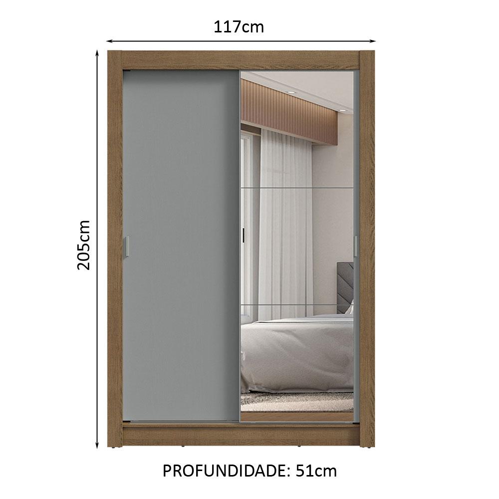 Guarda-Roupa Solteiro 2 Portas de Correr com Espelho 2 Gavetas Rustic/Cinza Vivare Madesa
