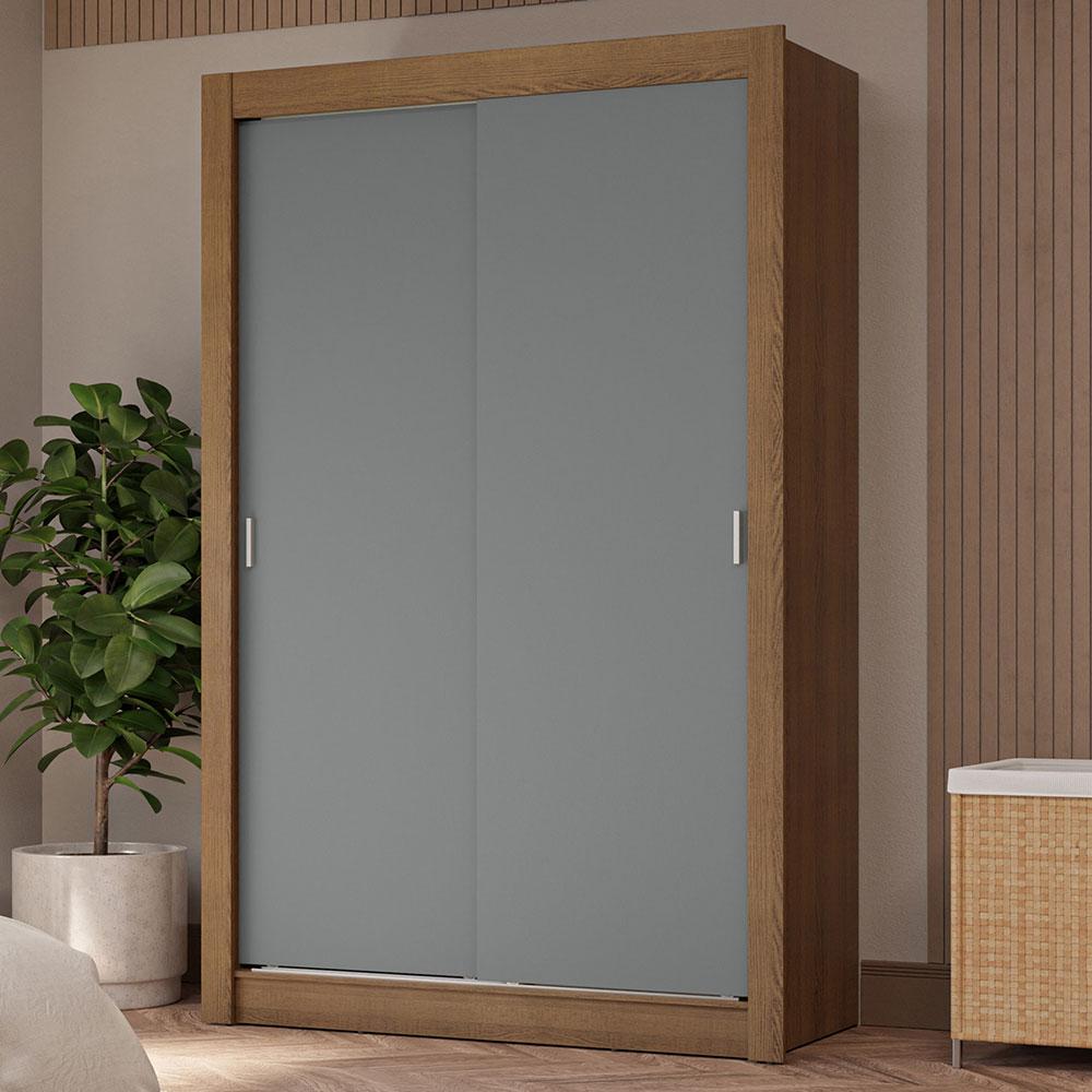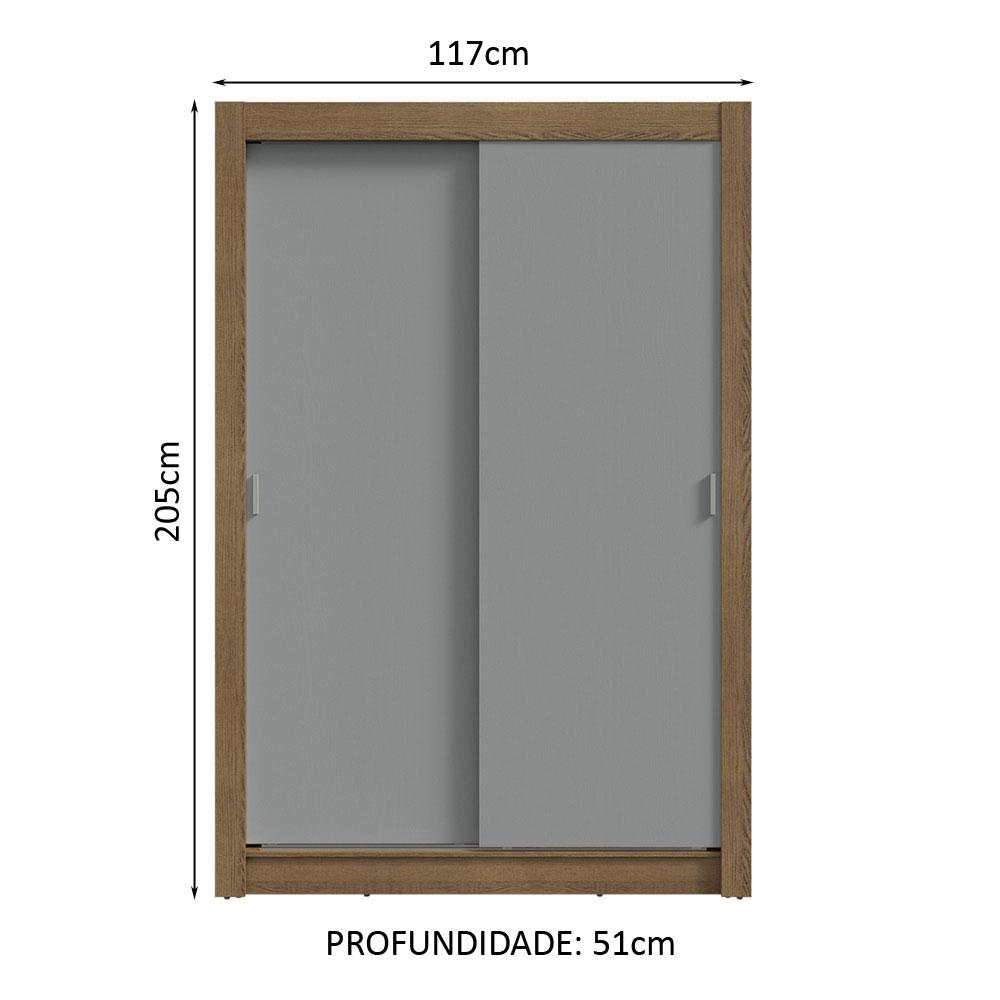 Guarda-Roupa Solteiro 2 Portas de Correr 4 Gavetas Rustic/Cinza Vivare Plus Madesa