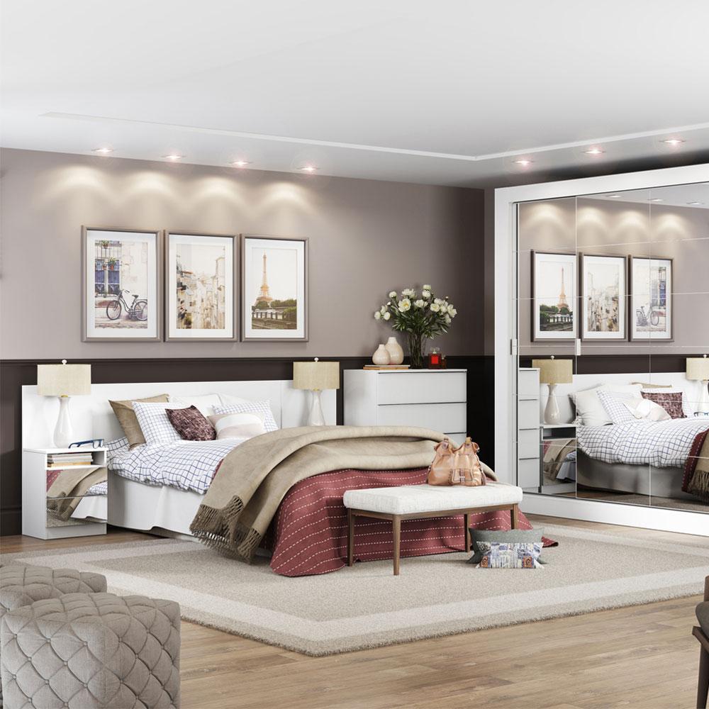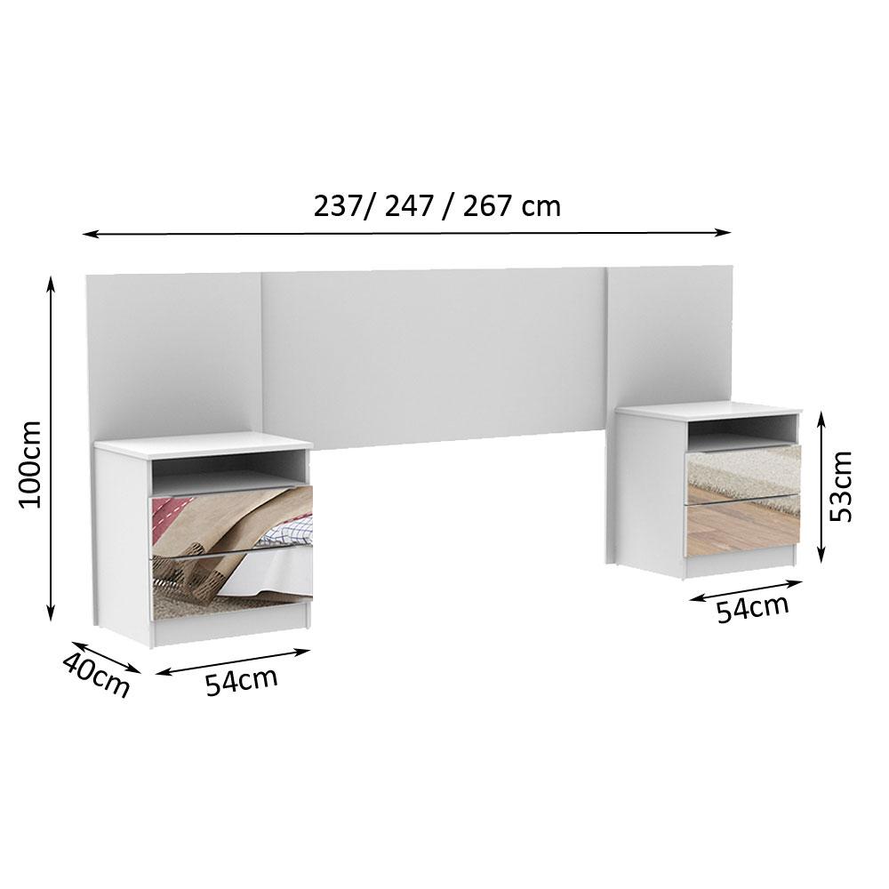Cabeceira Extensível Madesa com 2 Mesas Laterais com Espelho - Branco