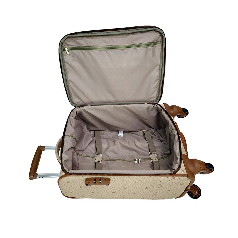 A mala de bordo para notebook da Linha Monique Gold é perfeita para quem busca praticidade e elegância em viagens curtas, seja a trabalho ou lazer. Suas medidas seguem os novos padrões da ANAC, permitindo embarcar com tranquilidade e sem despachar.Fabricada em vinil de alta resistência com estampa exclusiva, combina durabilidade e estilo, além de ser fácil de limpar. O compartimento independente para notebook conta com bolso acolchoado, bolso em tela com zíper e ponto fixo para cadeado, garantindo proteção e segurança para seus equipamentos.O corpo semirrígido possui frente e laterais reforçadas em polietileno expandido, além de traseira e fundo com chapa rígida, o que assegura maior proteção dos pertences. Internamente, o forro impermeável, as cintas elásticas e o bolso em tela com zíper tornam a organização mais prática e eficiente.Para conforto durante o transporte, a mala conta com puxador embutido com regulagem de altura, alça de mão superior com toque acolchoado e rodinhas com giro 360º, que proporcionam mobilidade suave. O cadeado TSA acoplado garante mais segurança, ideal para viagens nacionais e internacionais.Combine com os outros itens da Linha Monique Gold, como nécessaires, frasqueiras, pastas para notebook e bolsas de viagem, e tenha um conjunto completo que une estilo, organização e praticidade em qualquer destino.Destaques Técnicos• Garantia: 2 anos contra defeitos de fabricação• Assistência técnica: com peças originais• Peso: 3,25 kg• Dimensões: 55 (A) x 35 (L) x 25 (P) cm