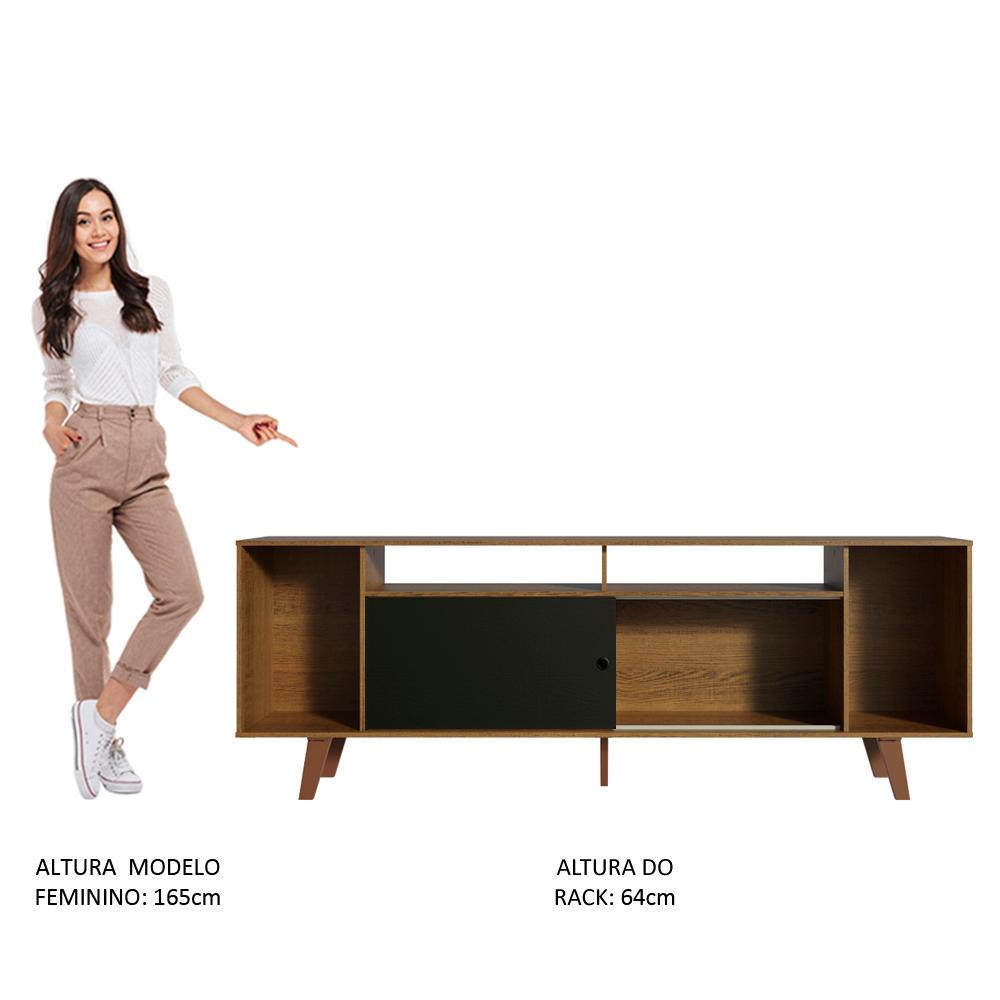 Rack para TV até 65 Polegadas Madesa Cancun com Pés - Rustic/Rustic/Preto
