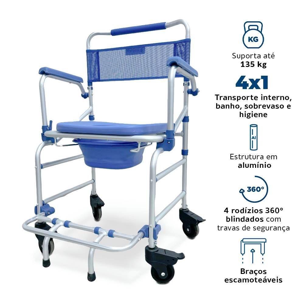 Cadeira de Banho Alumínio Dellamed Dobrável até 135Kg D55 1000464 A cadeira de banho em alumínio Dellamed D55 oferece conforto ao paciente e praticidade ao cuidador. Leve, dobrável e resistente à ferrugem, é ideal para o uso diário. Possui rodízios com freio, facilitando a locomoção em curtas distâncias. O assento é rebatível, removível e vazado, com suporte para comadre retrátil. O encosto é removível, feito em tecido de polietileno. Conta com apoios de pés rebatíveis e sistema anti-tombo. Os braços são escamoteáveis, com apoio texturizado para maior segurança. Funcional e durável, é perfeita para uso clínico, hospitalar ou domiciliar.Especificações Técnicas:Marca: DellamedModelo: 1000464Cor: Estrutura alumínio anodizado e acabamentos em azulCapacidade de Peso: 135 kgEstrutura: Alumínio, dobrávelEncosto: Removível, tecido em polietilenoComadre: Retrátil, em polipropileno, sem alça e sem tampaRodízios: 8 com freioApoio de pés: Rebatível, removível e com anti-tomboBraços: EscamoteávelApoio de braço: Em polipropilenoComposição de Itens: Estrutura em alumínio, assento, encosto, rodas, comadre retrátil em polipropileno, braços escamoteáveis, apoio de braço com ranhuras para aderência e demais peças plásticas em polipropileno.Profundidade x Largura do Assento: 41,5 x 40 cmCertificação Anvisa: 80795950051Altura Total da Cadeira: 94,5 cmAltura do Apoio de Braços até o Assento: 21 cmAltura do Assento até o Encosto: 44 cmComprimento do Apoio de Pés: 43 cmDimensões do Produto Liquido: 60,5 L x 94,5 A x 68 P cmDimensões da Embalagem: 18 L x 62 A x 52 P cmPeso Liquido: 5,2 kgPeso Bruto: 6,15 kgGarantia: 6 meses estrutura e 3 meses componentes