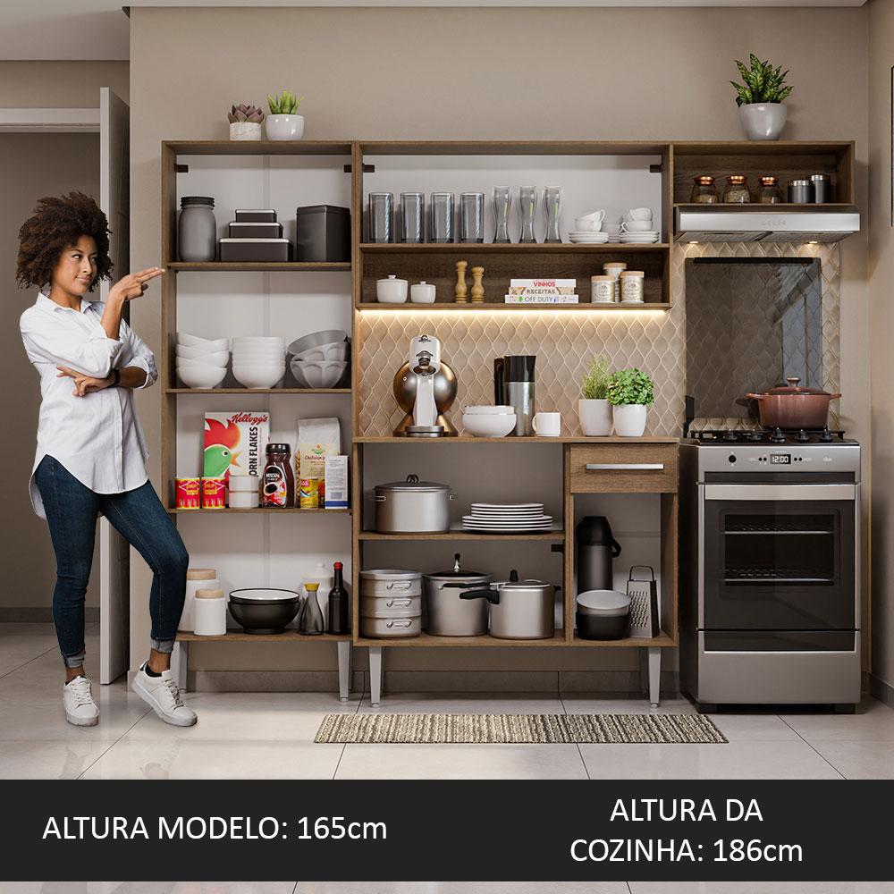 A Cozinha Emilly se destaca por ser compacta e super prática para o dia a dia. Seu espaço interno é muito bem distribuído e as cores branco e amadeirado combinam com ambientes modernos ou clássicos.É uma cozinha no estilo americana, similar a uma cozinha pequena planejada e conta com acabamento em Pintura Poliéster de alta resistência. Possui corrediças metálicas de 350 mm, dobradiças metálicas de 26 mm e pés reguláveis em PVC. Acompanha tampo de madeira do balcão.Medida:- 186 cm de altura- 229 cm de largura- 44 cm de profundidade no balcão e 27 cm nos paneleiros e aéreosItens inclusos:- Um (1) paneleiro com 4 portas- Um (1) balcão com 3 portas e 1 gaveta- Um (1) armário aéreo com 2 portas e 2 nichosCódigo do produto: G200709BObs.:- Imagens meramente ilustrativas.- É obrigatório fixar o paneleiro e o aéreo na parede.- A Madesa não disponibiliza serviço de montagem.- O produto segue com manual de instalação e todas as ferragens necessárias para sua montagem.1-O produto é novo ou usado?R.: Todos os produtos da Madesa são novos, enviados da nossa fábrica diretamente para as casas de nossos clientes.2-O produto vem montado? Se não, vocês realizam a montagem?R.: A Madesa não disponibiliza serviço de montagem. Todos os produtos seguem com manual de instalação e as ferragens necessárias. Alguns produtos possuem vídeo explicando o passo a passo da montagem.3-Vocês possuem loja física? Posso retirar meu produto em mãos?R.: Não possuímos loja física, apenas loja virtual. Confira as opções de envio ao colocar o seu CEP.4-Qual é o valor do envio? Posso pagar separadamente?R.: O valor do envio é calculado com base no peso e volume do produto, e no CEP de destino. Você pode calcular o valor e prazo de entrega no simulador.5-A Madesa entrega em todo Brasil? Como é feita a entrega?R.: Sim, entregamos no Brasil inteiro através de transportadoras parceiras.6-O produto acompanha Nota Fiscal?R.: Sim, todos os produtos são entregues com suas respectivas notas fiscais.7-Os produtos possuem garantia?R.: Sim. A Madesa oferece 3 meses de garantia para defeitos de fabricação.