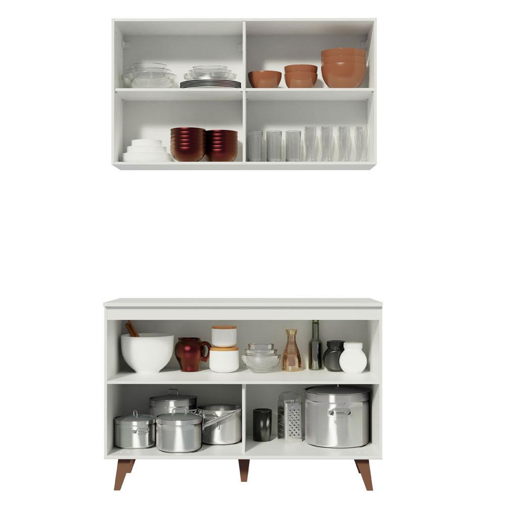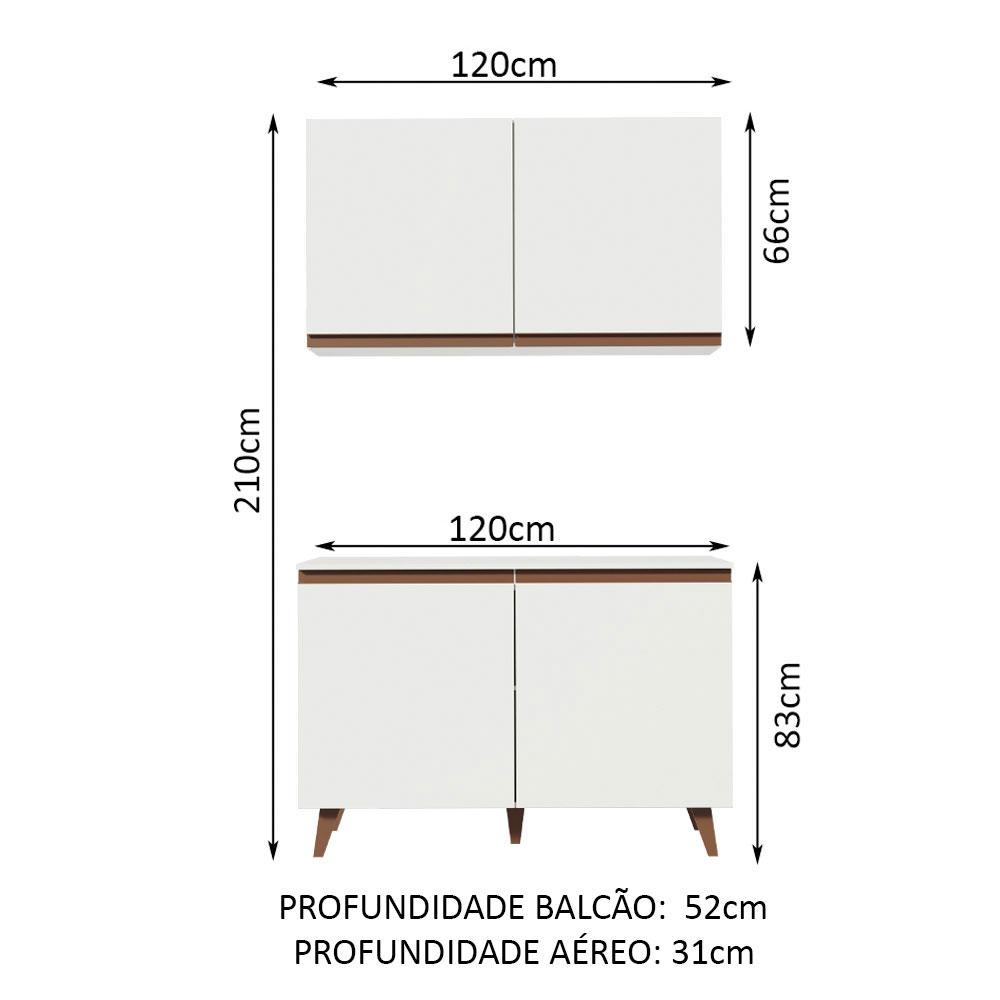 Kit Armário de Cozinha Aéreo e Balcão Gabinete de Pia 120 cm Branco Reims Madesa
