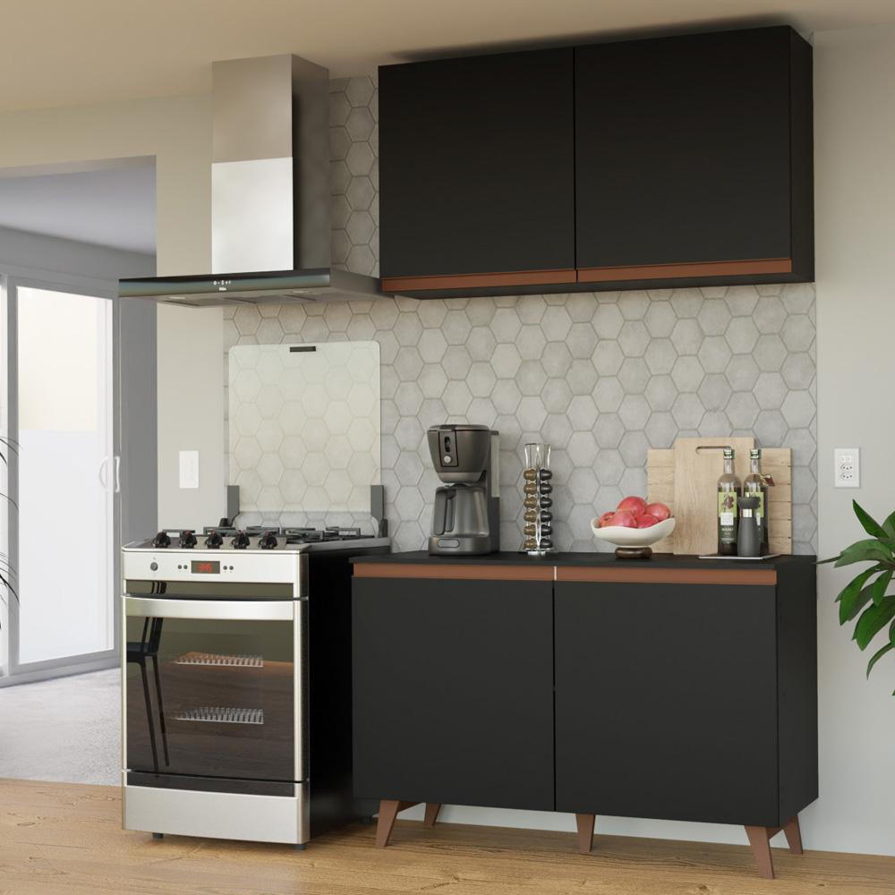 Kit Armário de Cozinha Aéreo e Balcão Gabinete de Pia 120 cm Preto Reims Madesa