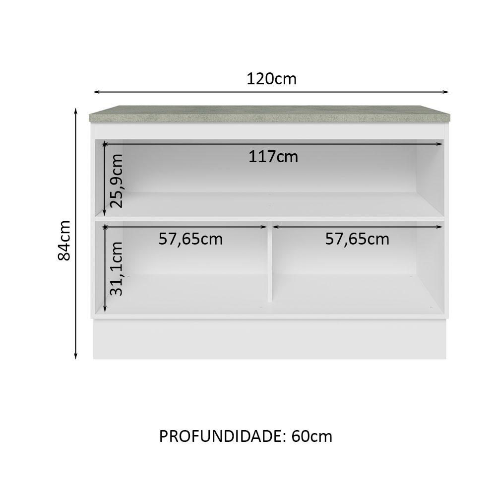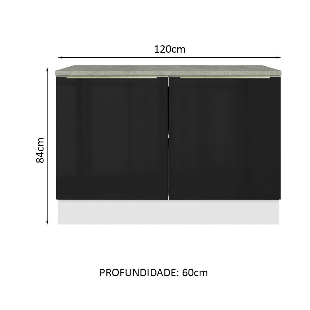 Balcão de Pia 120 cm 2 Portas Branco/Preto Lux Madesa
