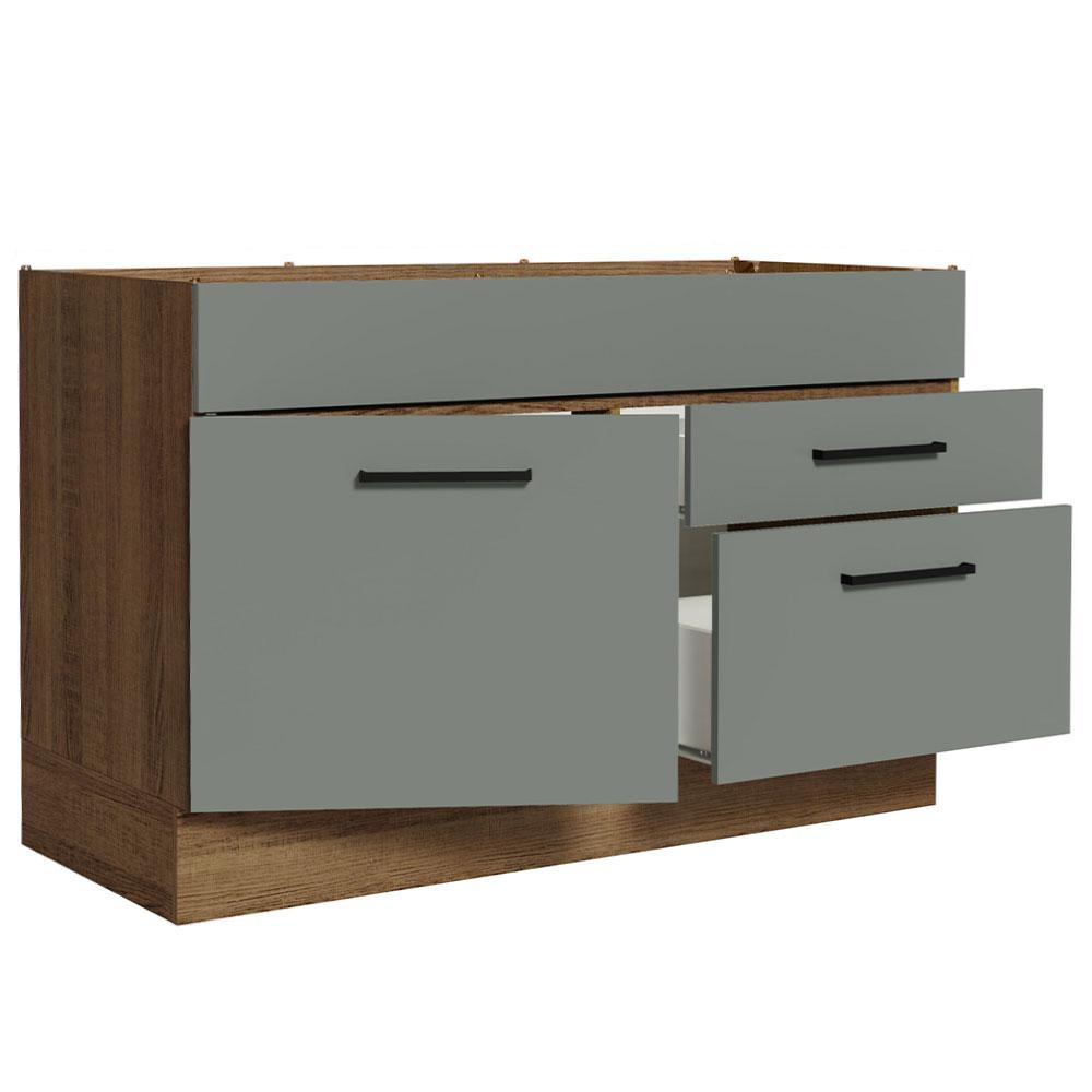 Balcão Gabinete de Pia Cozinha 120 x 60 cm 1 Porta 2 Gavetas Rustic/Cinza (Sem Tampo) Agata Madesa
