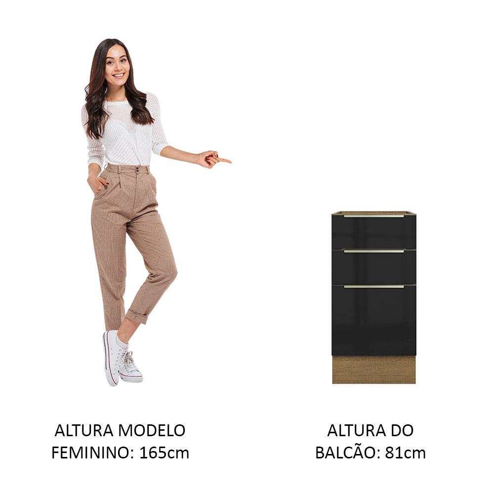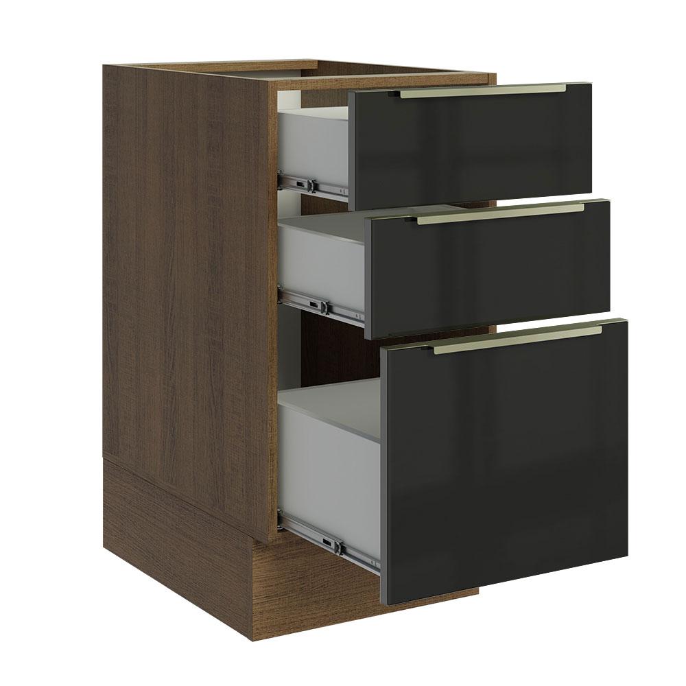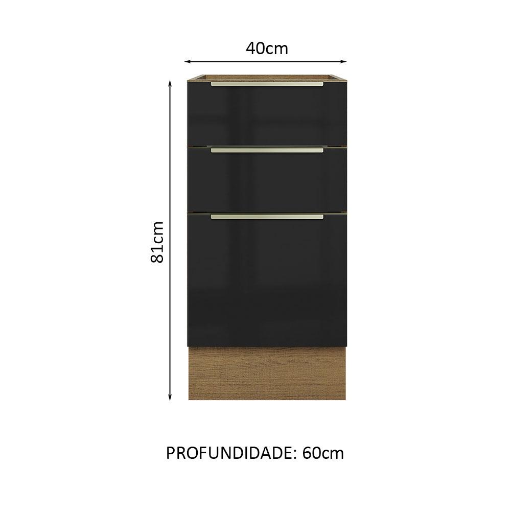 Balcão Madesa Lux 40 cm 3 Gavetas (Sem Tampo) - Rustic/Preto