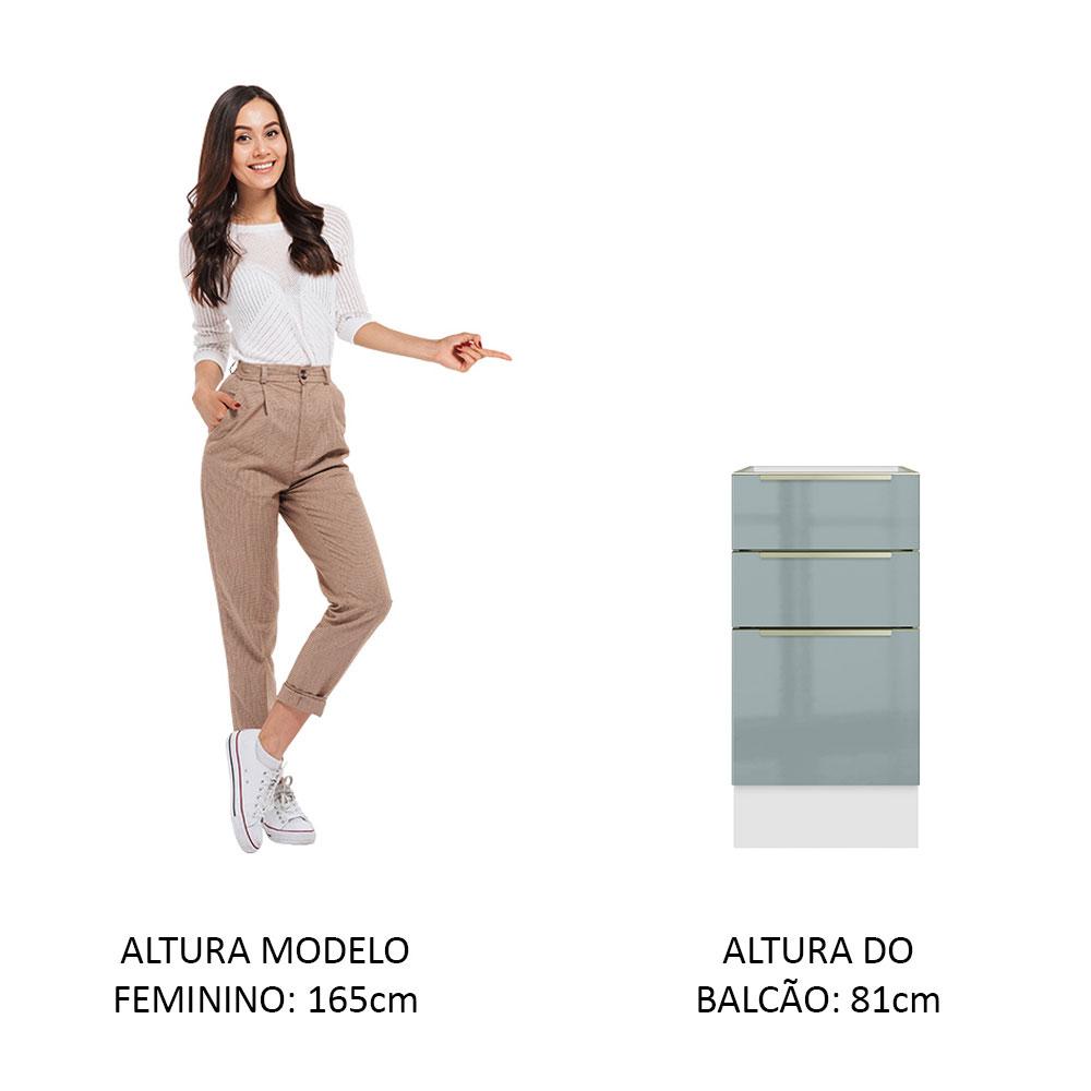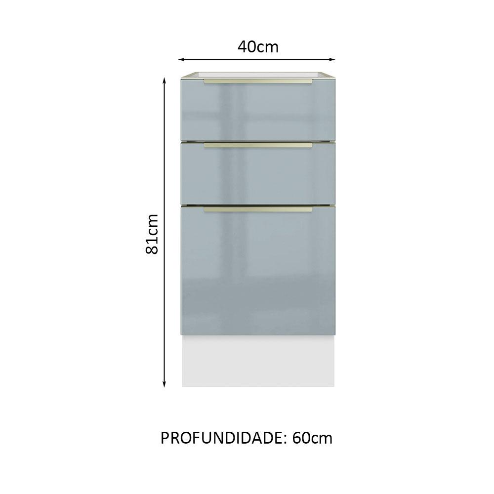 Balcão Madesa Lux 40 cm 3 Gavetas (Sem Tampo) - Branco/Cinza