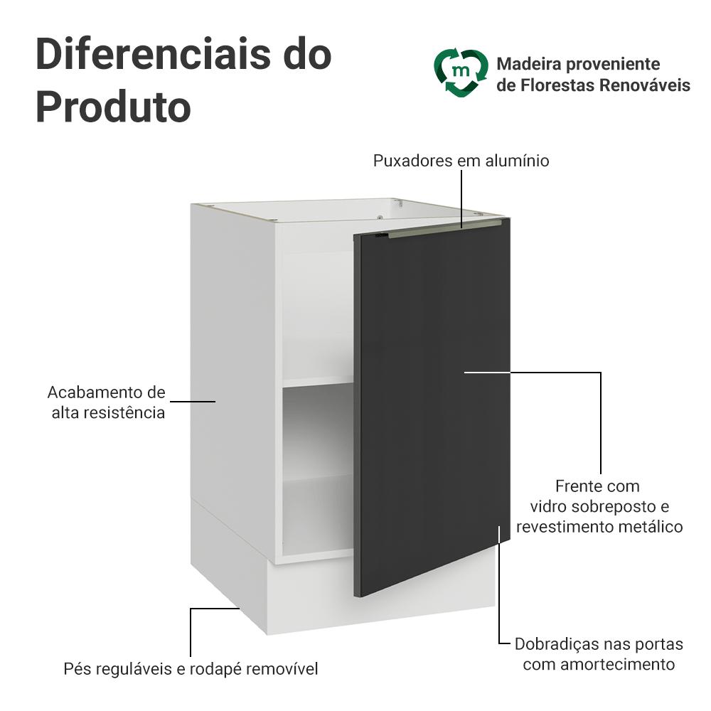 O balcão de 50 cm da linha Lux combina praticidade e um visual sofisticado para quem busca uma cozinha moderna e funcional.As portas apresentam fechamento suave e silencioso, garantindo maior preservação do móvel. Os puxadores reforçados, com acabamento em aço escovado champagne, trazem sofisticação ao conjunto.A estrutura em branco combinada com a porta preta cria um contraste marcante. Já as portas com vidro sobreposto entregam um acabamento moderno, resistente e elegante.Importante: este balcão é vendido sem tampo, perfeito para quem deseja personalizar o acabamento.Medidas totais:- 81 cm de altura- 50 cm de largura- 60 cm de profundidadeInformações técnicas:- Material: MDP- Peso suportado: 40kg- Altura dos pés: reguláveis de 15cm a 20cmO que você recebe:- Um Balcão de 50cm com uma porta (Não acompanha o tampo)Código do produto: G2250073LXÉ importante saber:- Imagens meramente ilustrativas, a decoração não acompanha o produto- A Madesa não disponibiliza serviço de montagem- O produto segue com manual de instalação e todas as ferragens necessárias para sua montagemA Madesa possui compromisso com a sustentabilidade. Geramos energia limpa em nossa própria usina, priorizamos fornecedores responsáveis e utilizamos plástico reciclado em nossa produção. Além disso, reinserimos sobras no ciclo de reciclagem e investimos no desenvolvimento de nossos colaboradores e da comunidade.Garantia: Este produto conta com 1 ano de garantia total, sendo 3 meses de garantia legal e 9 meses de garantia contratual. A garantia cobre exclusivamente defeitos de fabricação e vícios ocultos. Não estão cobertos: problemas decorrentes de montagem incorreta, uso inadequado, exposição à umidade, calor ou luz solar direta, modificações no produto ou desgaste natural.