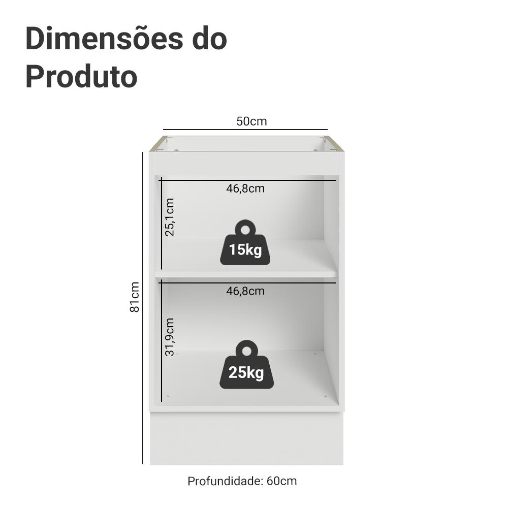 Balcão de Cozinha 50x60cm 1 Porta (Sem Tampo) BP Lux Madesa