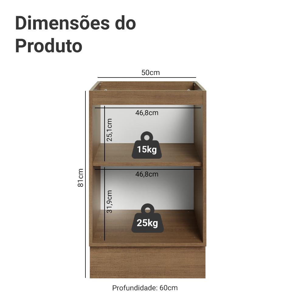 Balcão de Cozinha 50x60cm 1 Porta (Sem Tampo) RC Lux Madesa